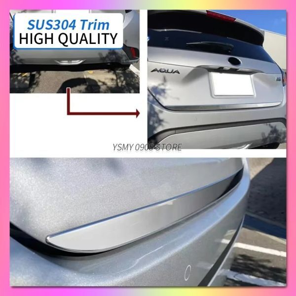 このトリムは、2021年以降のトヨタアクアMXPに対応しています。取り付けることで、リアゲート部分に洗練されたアクセントを加えることができ、車全体のスタイルを引き締めます。また、ステンレススチールは錆びにくいため、長期間綺麗な状態を維持できるのも魅力です。