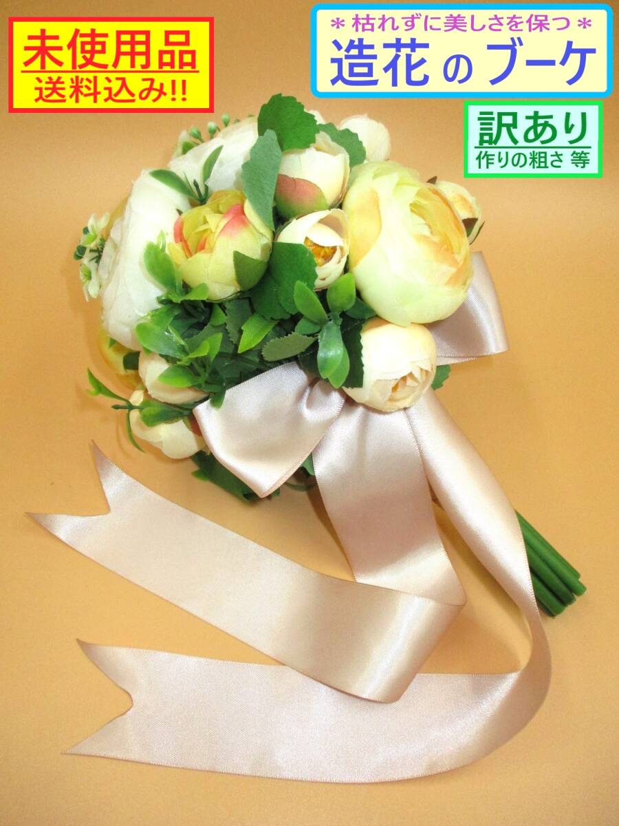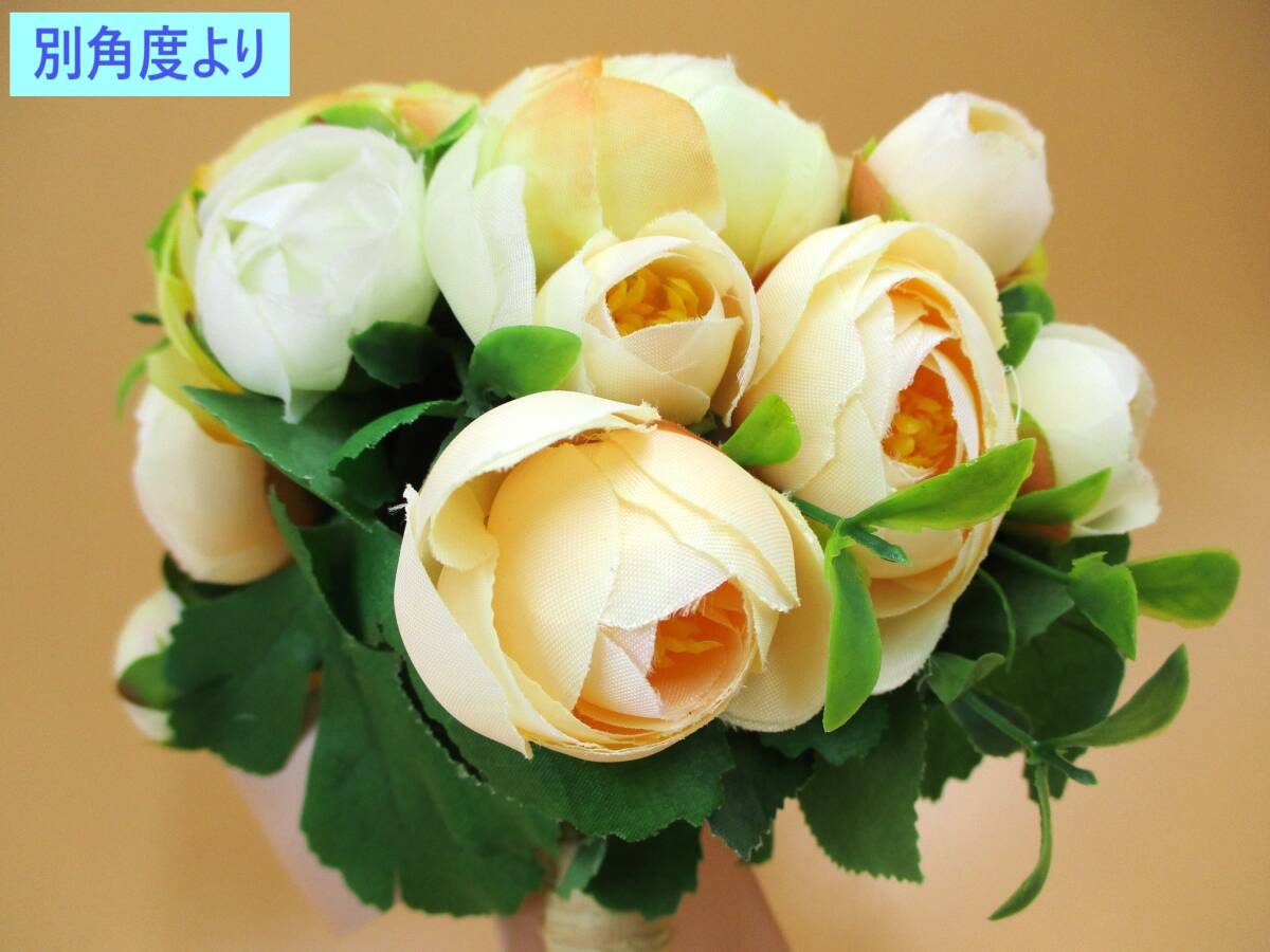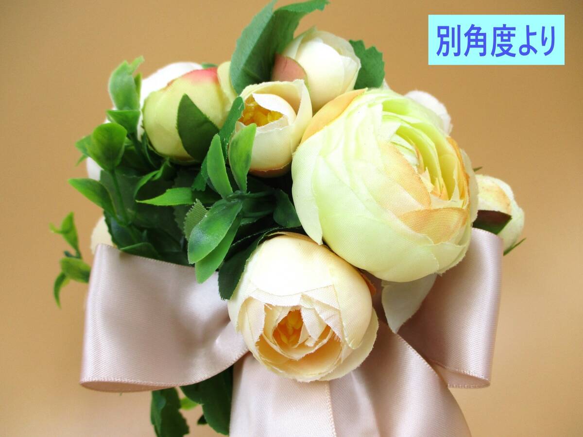 | 「訳あり」扱いの 未使用品です。 専用のパッケージ等の外装は ありません。 玄関やリビング等に 気軽に飾れる 造花の 小ぶりな花束です。 お色は 明るくかわいい イエロー系です。 海外製につき 全体的に 作りの粗さが見られます。 また 倉庫での長期保存品のため 経年による色あせや色のくすみ・ 埃の付着がある場合があります。 このため「訳あり」として出品いたします。 以下の商品説明をよくご覧になってから、 ご検討をお願い致します。 神経質な方、完品をご希望の方は、 御入札をご遠慮ください。 【商品内容】 室内向け 造花 インテリアフラワー ブーケ(花束) ・カラー:イエロー系 ・サイズ(外寸・おおよそのサイズ): 全長/約 25cm (「全長」のうち 茎の部分は約14cm) 造花部分 約 18cm×15cm *画像1の状態にて 造花の広がり方により多少の差異があります 飾りリボンの長さ 結び目から 約 33cm ・重量: 150g程度 ・その他: 海外製 タグなどがありませんので メーカー・造花素材などの詳細は不明です *セット内容・状態は、画像にてご確認下さい *実際の商品の色味とは異なる場合があります *サイズ対比として、 一般的なコーヒーボトル小缶を置いています 参考にどうぞ(画像7・8) 【状態等】 ・未使用品です。 ・専用のパッケージ等の外装は、ありません。 ・長期保存品につき、 経年による色あせや色のくすみ、 埃の付着がある場合があります。 美品をご希望の方はご遠慮ください。 ・全体的に、作りに粗さが見られます。 (素材切断面の処理・ボンドのはみだし等) 画像を参考にご検討ください。 (参考:画像9) 【補足】 保管中、及び配送中等に、 造花の形が崩れる可能性があります。 お手元に届きました際には、お手数ですが、 落札者様の方で形を整えていただいてから、 ご使用いただきますようお願いいたします。 (発送状態:画像10) 以上の点より「訳あり」として出品いたします。 ご承知をいただける方のみ、 ノークレーム・ノーリターンにて ご検討下さい。 | ||