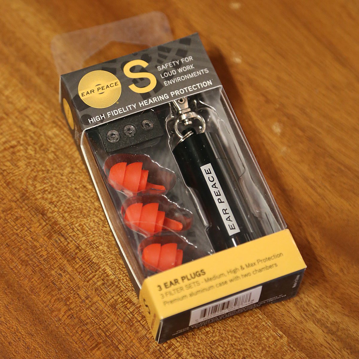 EarPeace S はあなたの作業をより安全かつ快適にする耳栓です。 作業音やノイズなどを軽減しながらも、人の声などは聞こえるためコミュニケーションには問題がありません。 3個のレッドイヤープラグ(耳栓)と3種類の異なる遮音性を持つ交換可能なアコースティックフィルター、スタイリッシュなカラビナ付きのアルミケースが同梱されています。 EarPeace の耳栓にはミディアム、ハイ、マックスの異なる遮音性のフィルターが3種類同梱されていて、簡単に交換することが可能です。 ミディアムとハイは音楽や会話がクリアに聞こえるハイフィデリティ。 マックスフィルターは最大限の遮音で静けさが必要な時に活躍します。 それぞれのフィルターの効果が異なるため、EarPeace 一つあれば様々な環境でご利用いただけます。 ■Medium Protection (CLEAR) = SNR 17 / NRR 11.ほとんどの大きな音の出るイベントやクラブやリハーサル、映画鑑賞時、ご利用いただけます。 ■High Protection (RED) = SNR 20 / NRR 14.フェスティバルやコンサートなどでスピーカー前でイベントを楽しむ際などに威力を発揮します。 ■Max Protection (BLACK) = SNR 26 / NRR 19.最も高い遮音性で本当の静けさが必要な時、非常に大きな音の中にいるときに快適にご利用いただけます。 ※旧パッケージと新パッケージの商品が混在する場合がございます。 |
