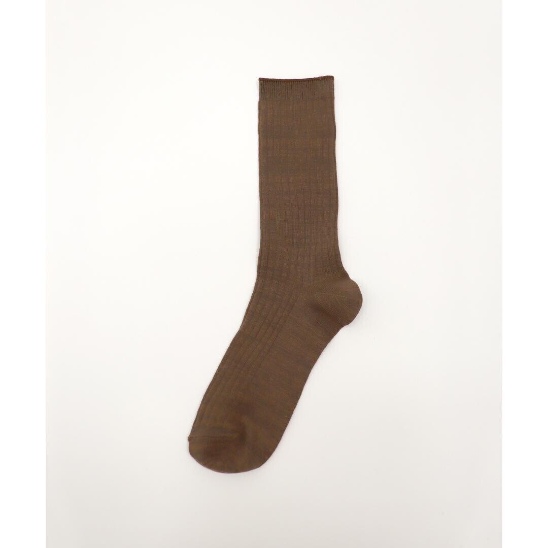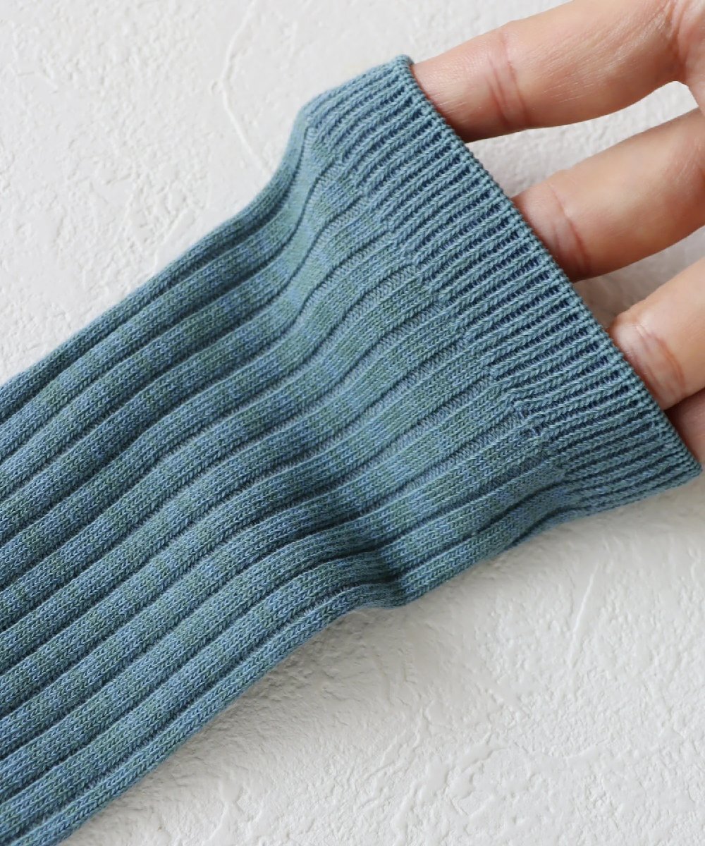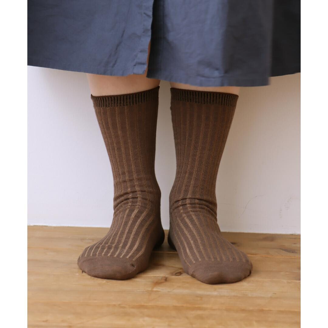 リネン70%・コットン30%の混紡糸を使ったリブ編みソックス。