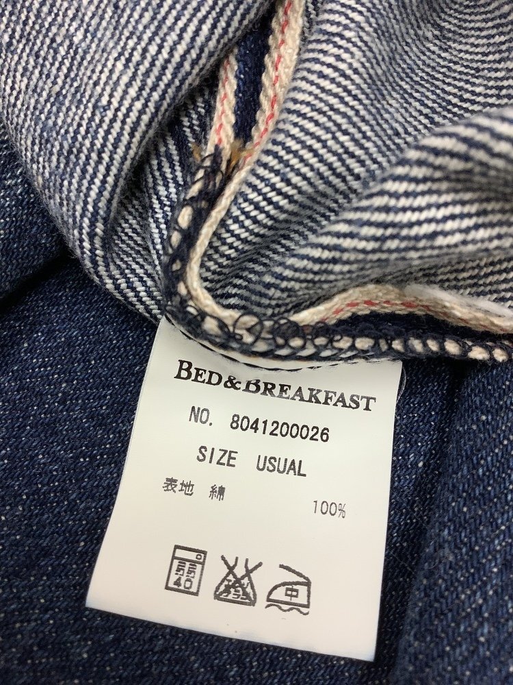 | 管理番号:10^133004 ベッド&ブレックファースト 色落ち加工 ブルーデニムパンツ 表示サイズ:USUAL 実寸(参考)