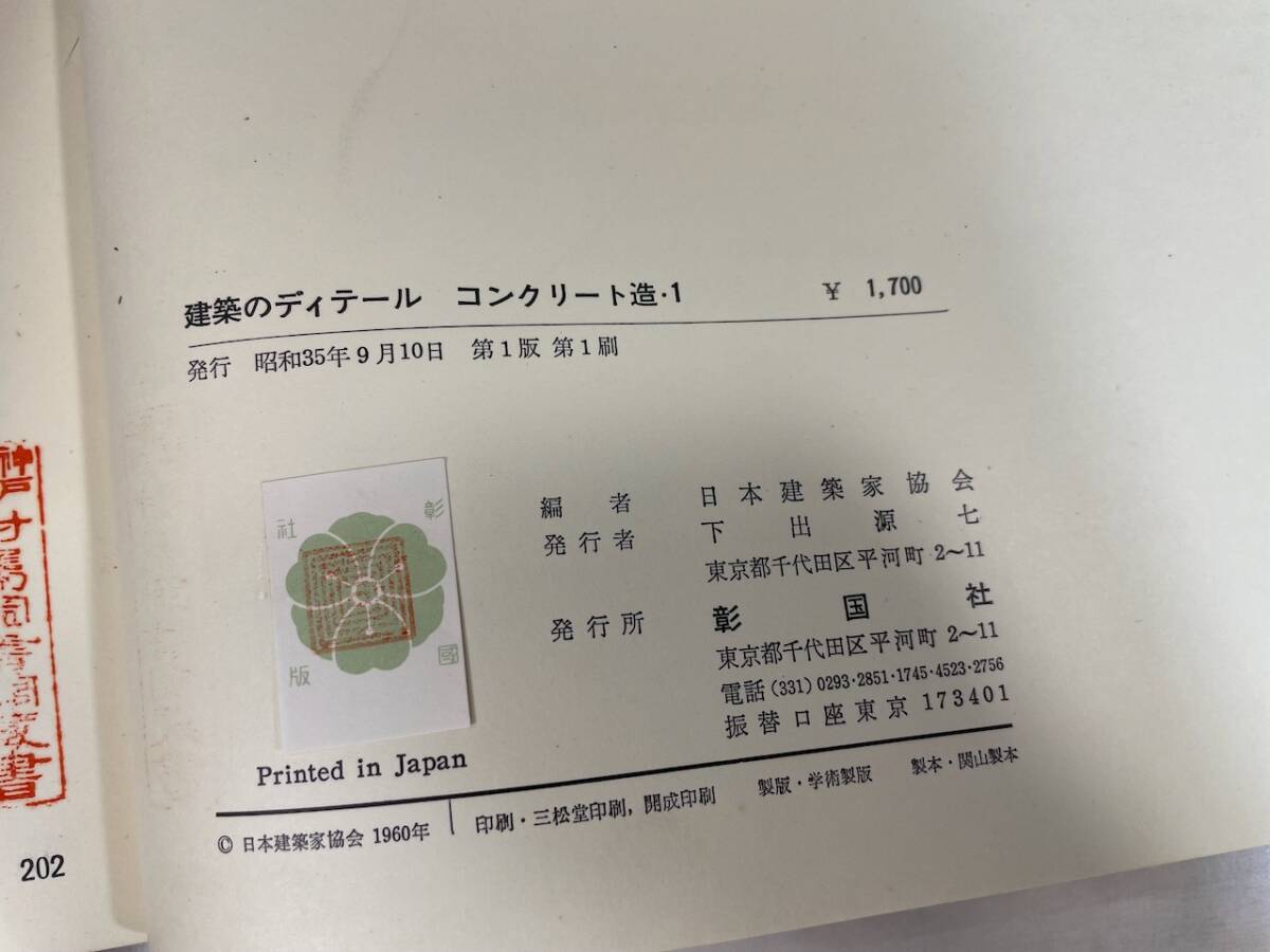 建築のディテール コンクリート造1 日本建築協会 彰国社 昭和35年初版