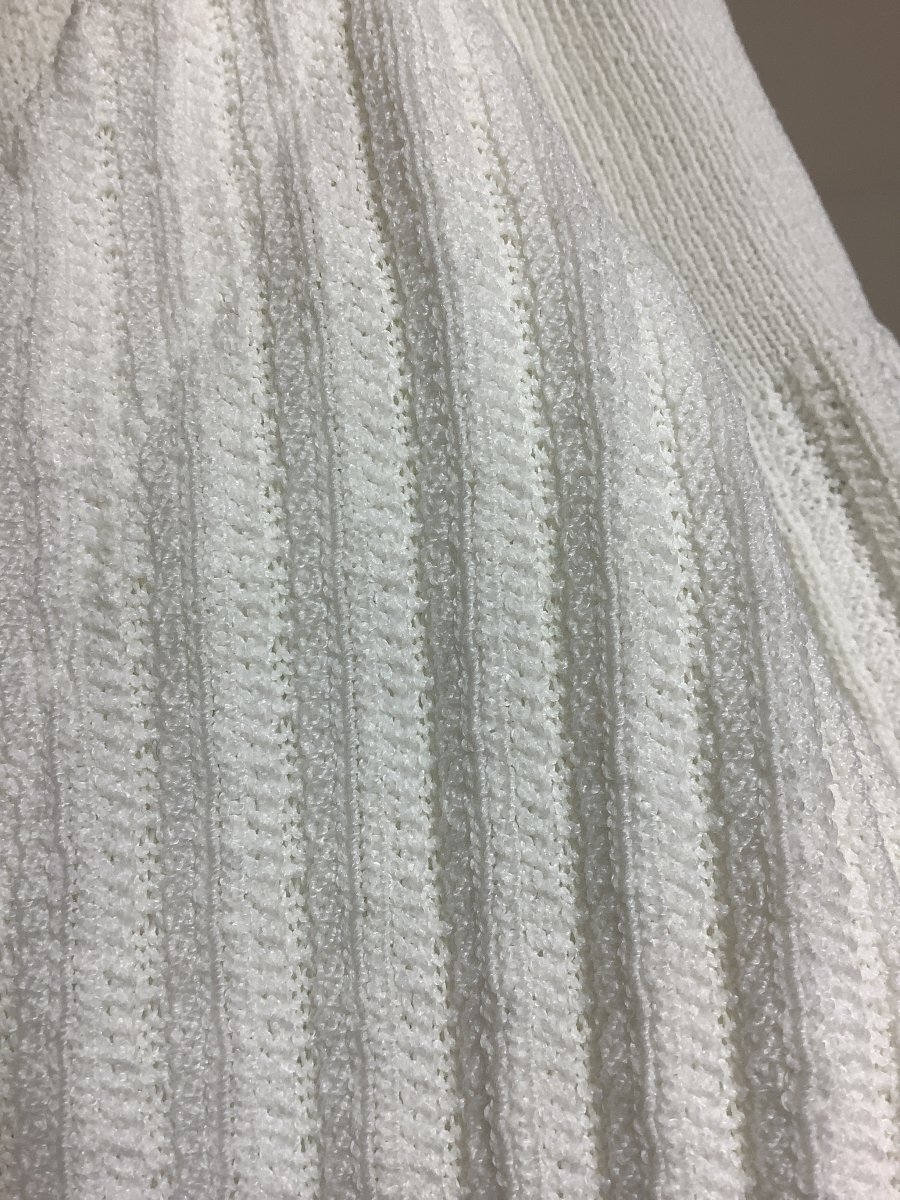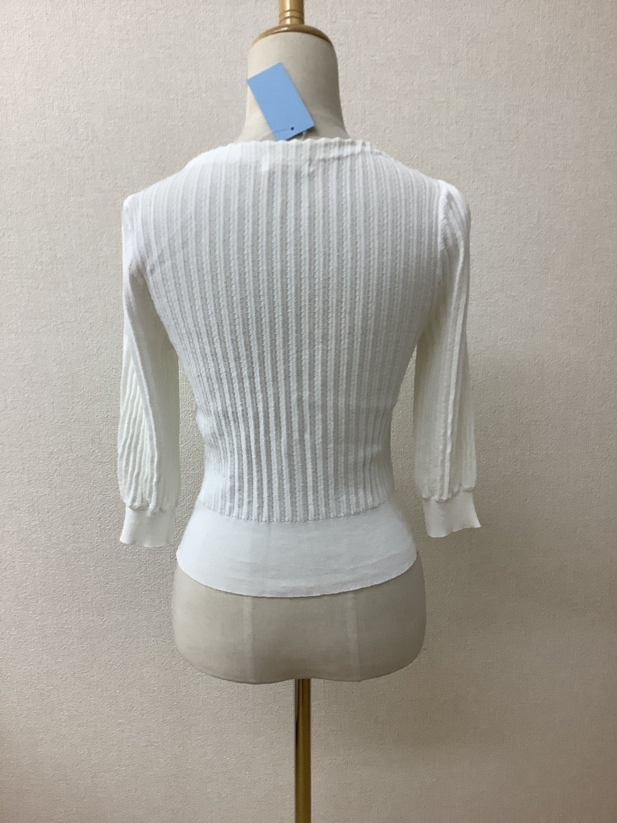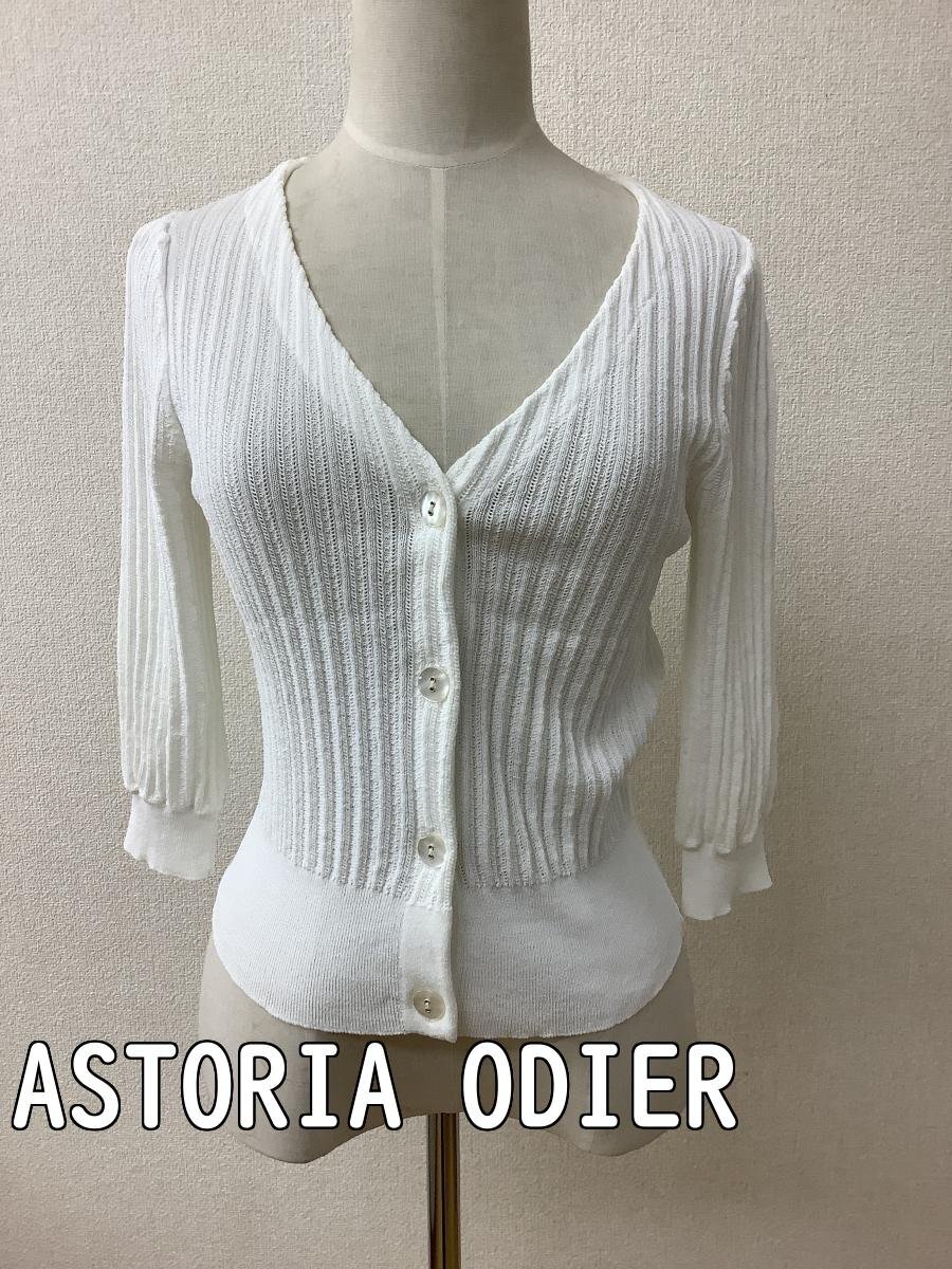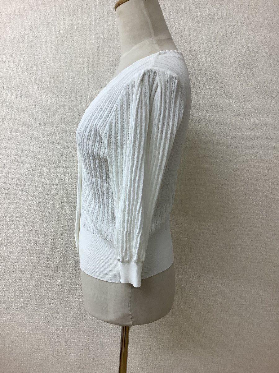 | 管理番号:10^138112 ASTORIA ODIER アストリアオディール 白 模様リブカーディガン 透け感あり 表示サイズ:S 実寸(参考)