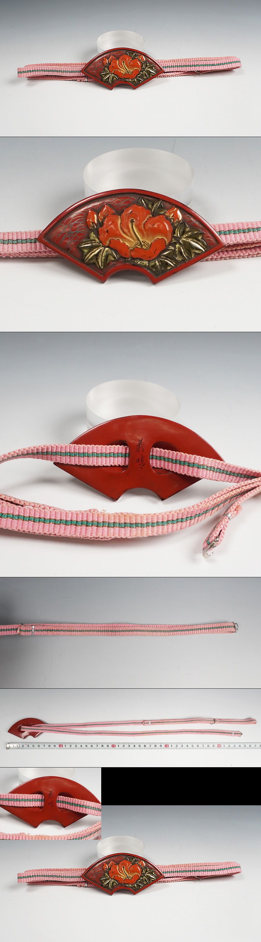 | 義晴 銘有 朱塗り帯留め 木彫 牡丹の花 帯留 おびどめ 和装小物 | ||||