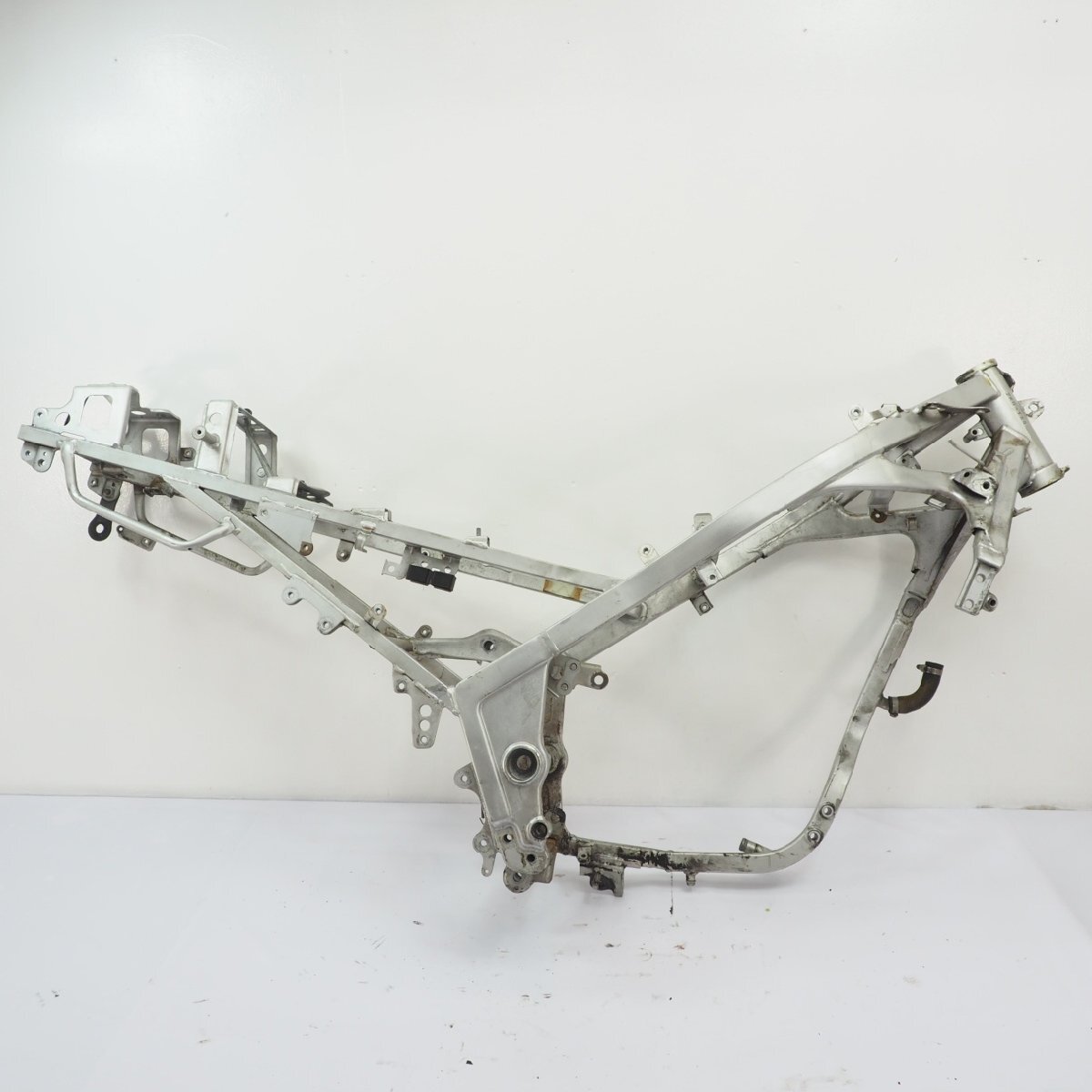 | 登録できる書類付きFZR250フレームです。 フレーム番号は2KR-166xxx、00年式、3HX1モデルです。 作成や載せ替えベースに最適な素材だと思いますよ。 走行や組まれた状態での詳細は不明になります。 アンダーフレーム無し。 ネックの付け根は目立つへこみや曲がりのないものです。 ストッパーは使用傷ありますが、ひどいつぶれはありません。 全体的に錆傷あり。前方後方から見た感じ捻りは無さそうです。 一応、板金補修ベースとなります。チェックやそれによる補修できる方などにはもってこいのベースです。 各チェック、ご確認補修などの後、是非お役立てください。 ※当方の都合上、書類の発送は商品とは別途になります。発送日は毎週水曜日(商品落札が月曜火曜の場合は、次週水曜)を予定しております。 |