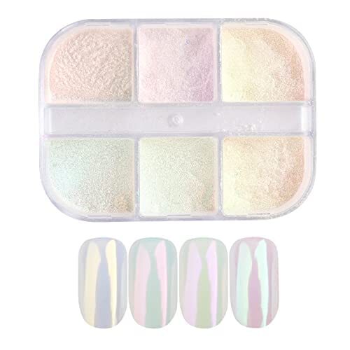 | 商品説明 | 【パッケージ】6色のオーロラパウダーが一つのケースに入っています。細かいパウダーなので、開封時にご注意ください。 【オーロラパウダー】クリアタイプのオーロラパウダーです。見る角度によって輝き方が変わる美しいオーロラが魅力的です。透明感の中に美しい輝きを放つパウダーは涼しげな透明感を演出します。 【色が豊富】6種類のオーロラカラーがあって、ベースカラーによって色味も変わるので、様々なネイルアートが楽しめます。春ネイル、夏ネイル、秋ネイル、冬ネイルに適しています。 【オーロラネイルパウダー】いつものカラーにオーロラパウダーを塗ると、女性らしく可愛いオーロラネイルに仕上がります。光の当たる角度によって、色味がオーロラに輝きます。 【粒子の細かいパウダー】初心者にも扱いやすい微粒子パウダーなので、光沢があるネイルが簡単に作成できます。上品な輝きで、ネイルを華やかに飾ります。普段のネイルにもパーティーネイルにも大活躍。