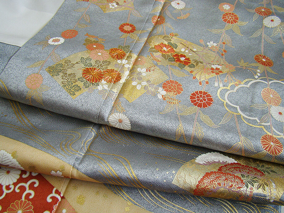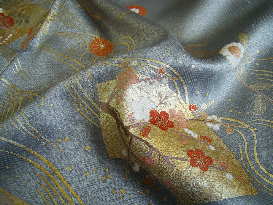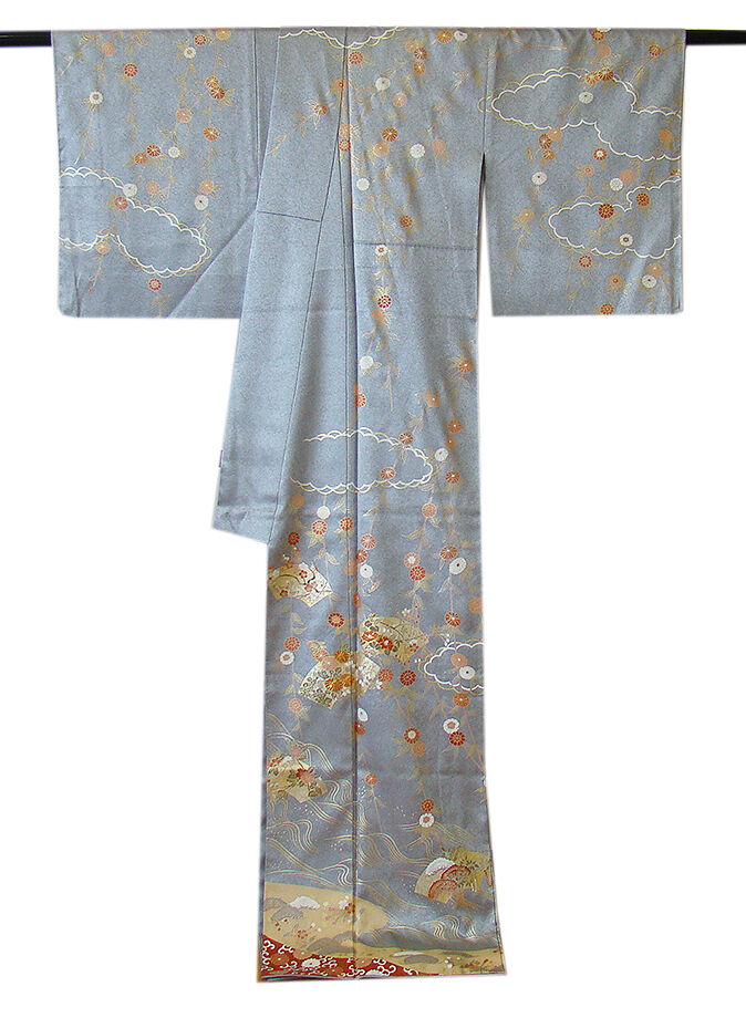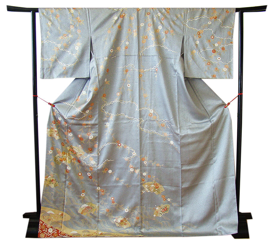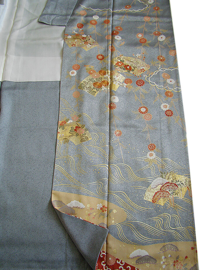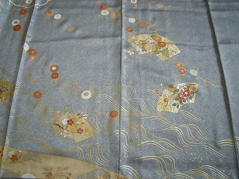 | 商品説明 | こちらのお品は「袷」ですので10月から5月までお召頂ければと思います。 とてもしなやかで柔らかな手触りの着心地良い重めの上質な紋意匠地の生地、 錫色地に地模様入りに、地紙文、花木、雲取り柄等の染柄に豪華な金彩加工仕立て、 気品に満ち溢れた彩りが正統派のお着物として一枚は欲しい逸品の素敵なお着物です。 八掛は共色に地模様入り(正絹)、幅広い年代の方にお召頂けます。 |