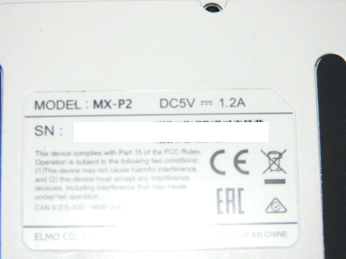 | 商品名 | ELMO コンパクト書画カメラ MX-P2 |
