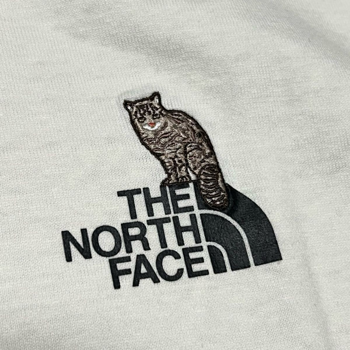 ノースフェイスのロゴに刺繍のヤマネコが乗っている珍しいモデルです。