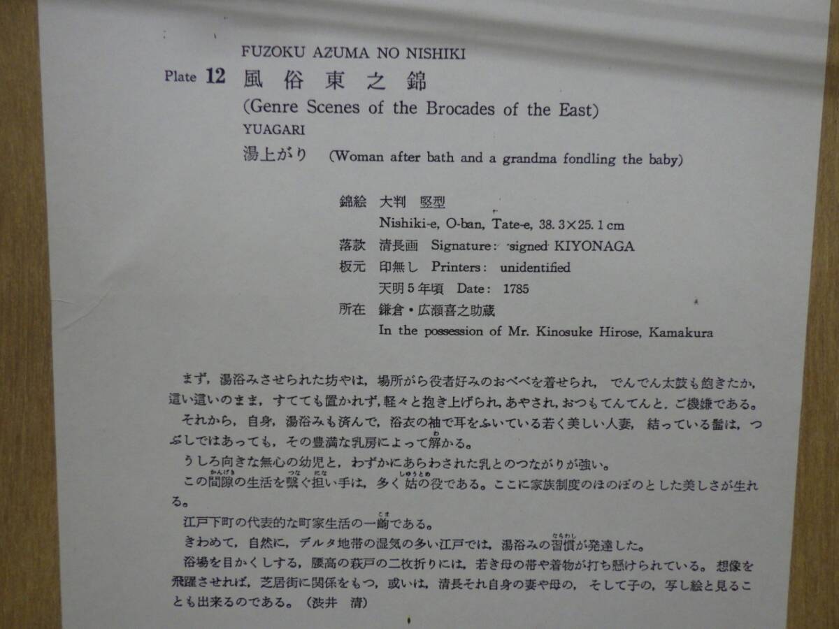| 商品名 | 清長 風俗東之錦 湯上がり 錦絵 大判 板元印無し 額付き 長期保管 中古品 |