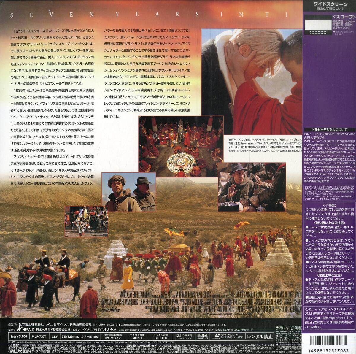 B00170886/LD2枚組/ブラット・ピット「セブン・イヤーズ・イン・チベット(Widescreen) 1998年」 [浏览原始页面]