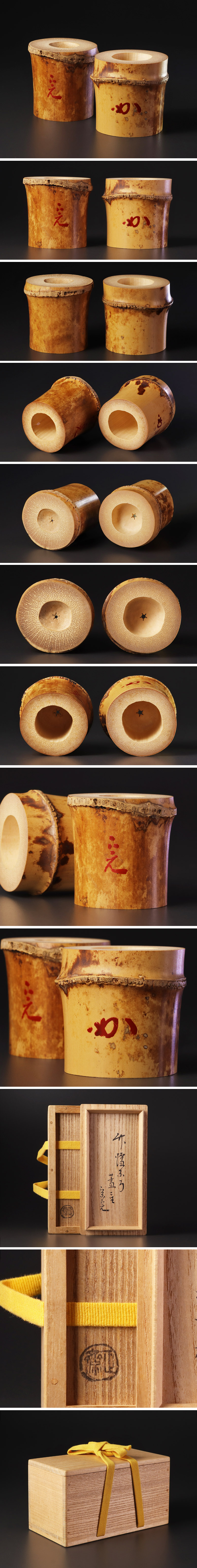 節の表情や竹肌の質感が生き、凛とした佇まいと風格を備えた竹蓋置です。 ★商品は影林宗篤作・堀内宗完(兼中斎)書付の作品である事を保証致します。 |