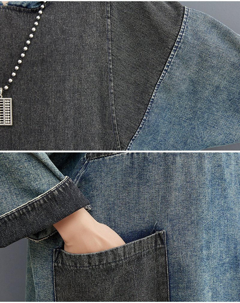 デニムワンピース 長袖 レディース ワンピース フード付き パーカーワンピース ゆったり ロングワンピース ポケット付き ★XXLサイズ