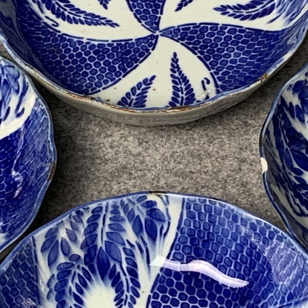 伊万里印判ねじれ文なます皿4枚です。 商品画像が実際の商品そのものですので、ご入札前にしっかりとご確認いただきますようお願いいたします。 |