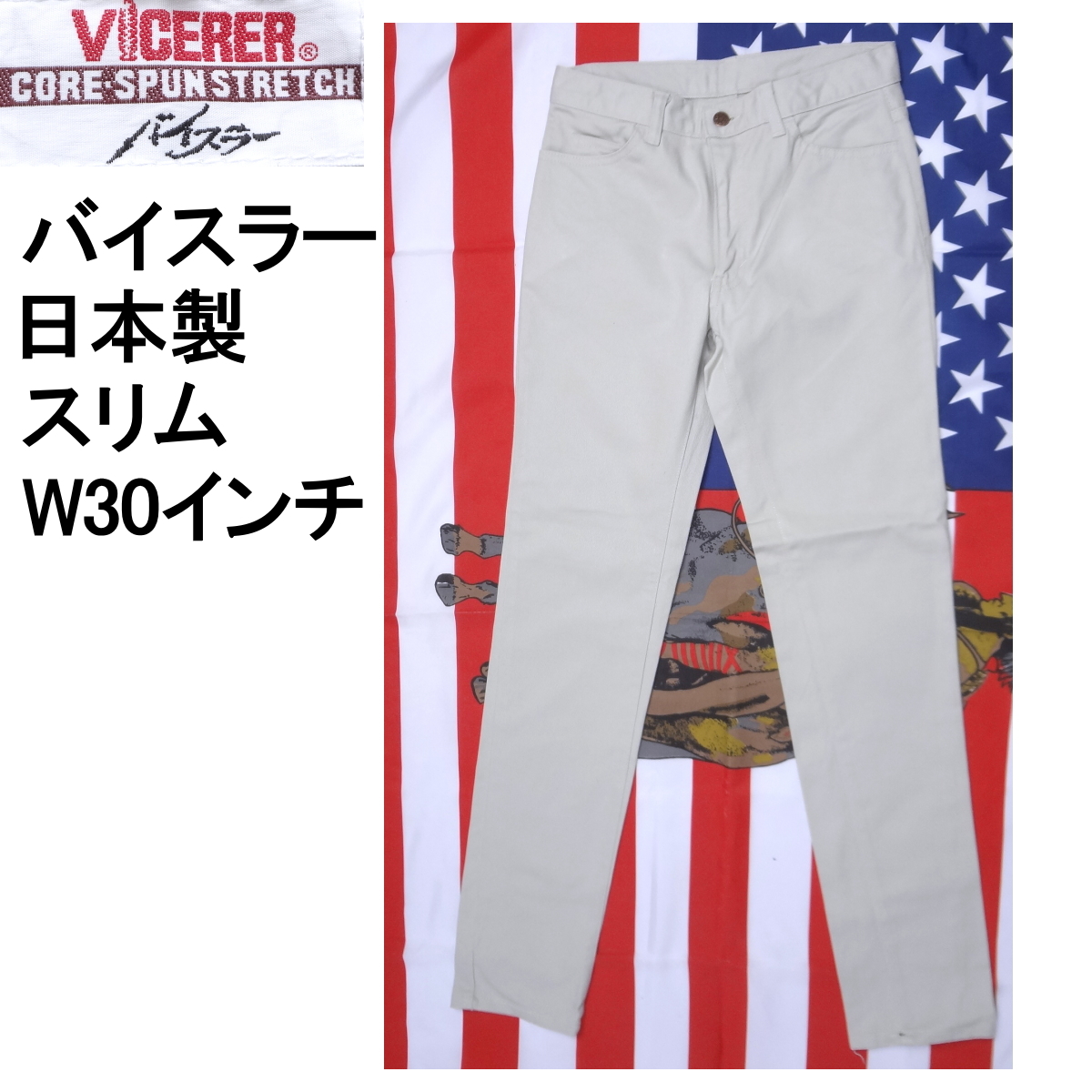 VICERERバイスラーのパンツ、実店舗の店頭展示品を1度洗濯しただけの未使用品、ホワイトベージュジーパン、綿95%/ポリウレタン5%