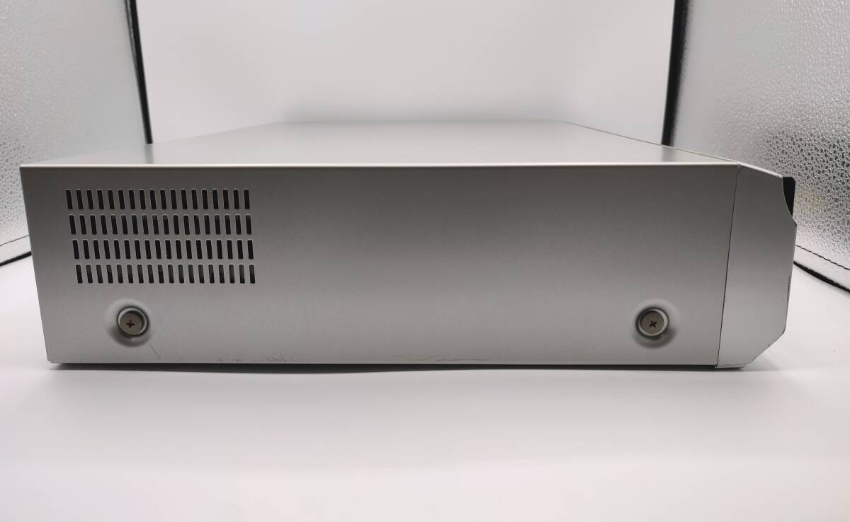 【商品名】 Panasonic VHS⇔DVD⇔HDDダビングデッキ 『DMR-XW40V』 【セット内容】 本体、純正リモコン、B-CASカード 取説CD(PDF形式のためPCでお読みください) HDMIケーブル、電源ケーブル、アンテナケーブル 【動作確認】 ●地デジ受信OK(BS/CSは動作環境がなく未チェック) ●2番組同時録画 ●VHS再生/DVD再生/HDD再生 ●VHS→DVD-R/RW/RAMへのダビング ●VHS→HDDへのダビング ●HDD→DVD-R/RW/RAMへのダビング ●HDD→VHSへのダビング ●DVD-R/RW/RAMのファイナライズ 【外観の状態】 ●本体のフロントパネル、電源ボタンのメッキが黒くモヤの様になっています。 ●B-CASカード挿入口付近の取っ手が一部欠けています。 ●天板に細かい傷、左側面に多数の傷がございます。 【整備内容】 ●分解してブロアーで丁寧に埃を除去 ●劣化した電源周りのコンデンサーを新品に交換 ●VHSヘッドクのリーニング ●VHSユニットの駆動ベルトを新品に交換 ●VHSピンチローラーのクリーニング ●DVDドライブ開閉用ベルトを新品に交換 ●DVDピックアップレンズのクリーニング ●本体液晶を内部まで清掃 ●VHS、DVD可動部に新しいグリスを塗布 ●カセットコンバーターのグリスアップ ●冷却ファンの清掃 ●各端子のアルコール洗浄、接点復活剤を塗布 【大きさ・重さ・製造年】 【サイズ】 幅430mm×高さ93mm×奥行342mm 【重 さ】 約7.1kg 【製造年】 2006年製 【保管環境について】 喫煙者なし、ペット飼っておりません、 暗所にて大切に保管。 【保証について】 お受け取り日から7日間の動作保証がございます。 BS/CSの受信については受信環境がないため、 確認できませんので保証対象外とさせて頂きます。 | |