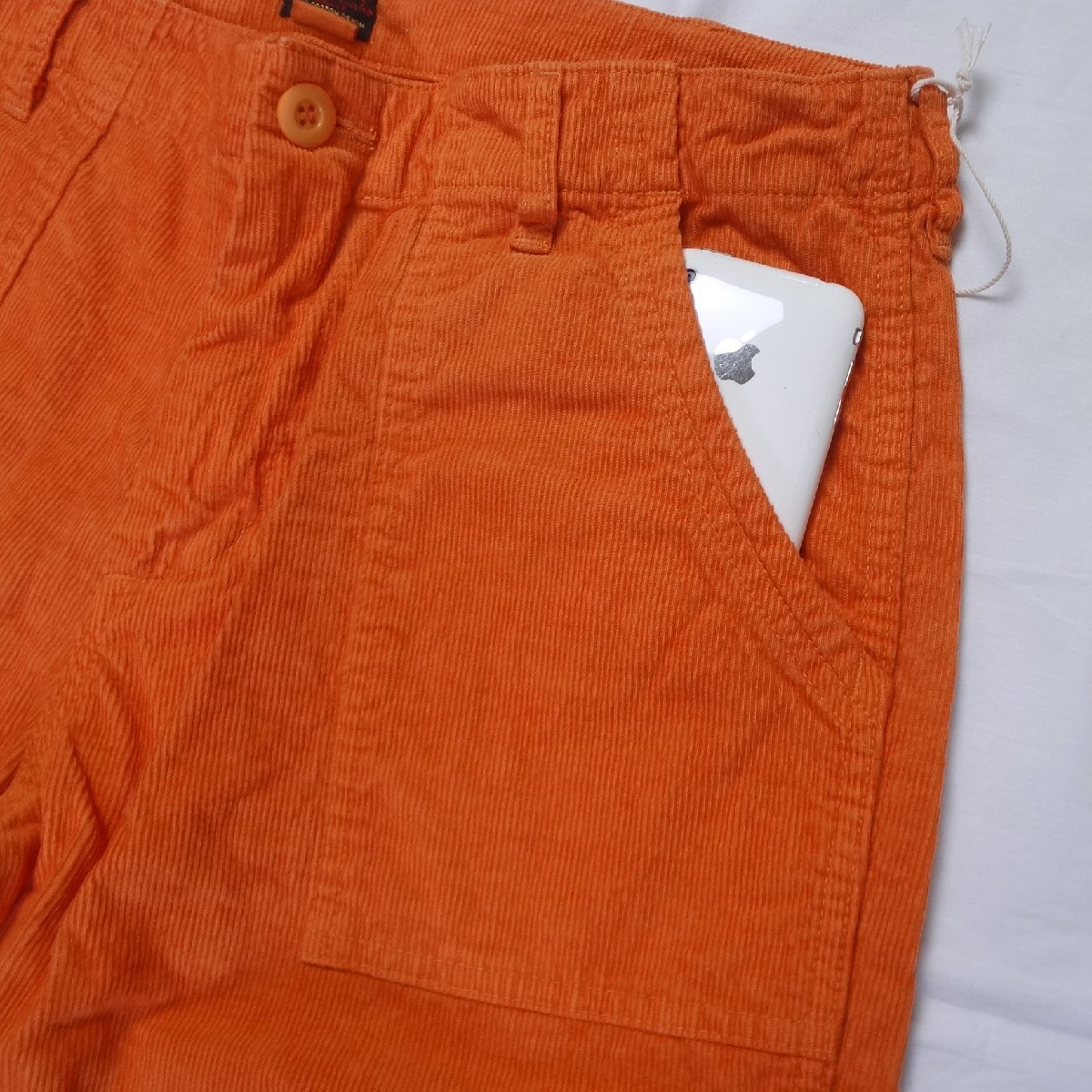 ドゥニームDENIMEのショートパンツ、オレンジ、素材は綿70%/ヘンブ30%、2014年春発売