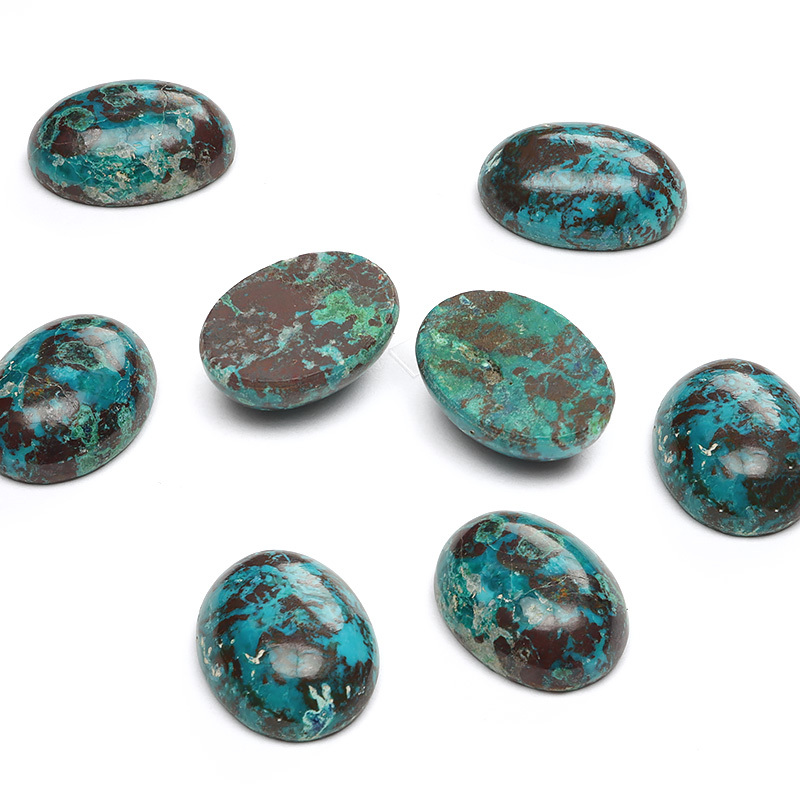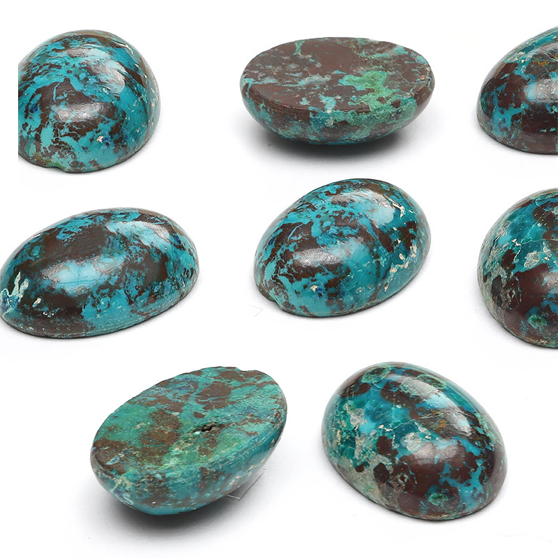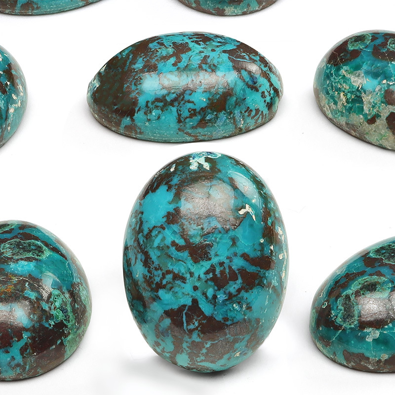 鮮やかな色模様がとても印象的なグリーン・ブルーが発色が目を引くコンゴ産のクリソコラのカボションです。