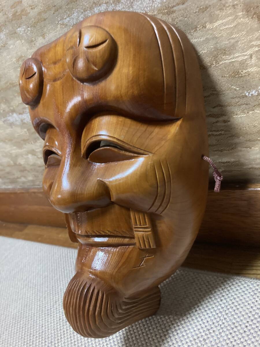 【お面】翁面 木彫り 木彫り面 能面 狂言 神楽 彫刻 木工芸 飾り物 壁飾り お面 爺さん 和風インテリア 小道具【現状品】 | |||