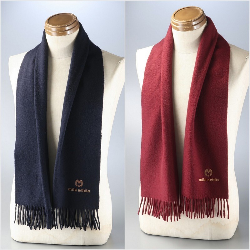 | TI8201◎mila schon ミラショーン ウール マフラー 2枚セット ロゴ刺繍 ストール ショール ボルドー系 ネイビー系 紺 全長:約144cm/146cm | |||