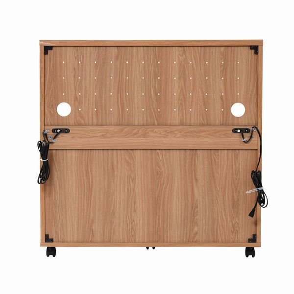 | 【サイズ】 <外寸> 幅90×奥行41.5×高さ89.5cm <内寸> 引出し:幅21.5×奥行33×高さ7.5cm 下部扉内:幅51×奥行36×高さ40cm スライド部大:幅54×奥行33×高さ35.5cm スライド部小:幅25×奥行33×高さ35.5cm スライド引き幅:32.5cm 下部扉内可動棚:幅56.5×奥行35×厚み1.5cm(3.2cmピッチ5穴) 天板:幅90×奥行41.5×高さ89.5cm 【耐荷重】 天板:(約)30kg以下 可動棚:各(約)5kg以下 スライド棚大:(約)5kg以下 スライド棚小:(約)3kg以下 引き出し:各(約)3kg以下 【材質】 本体:プリント紙化粧合板 【生産国】 マレーシア 【梱包】 サイズ:96.5×43×20cm、重量:37kg 【その他】 ・背面化粧有り ・可動棚:1枚 ・合計1500Wの2口コンセント付き(コード長さ 200cm) ・キャスター5個(うちストッパー付き2個) 【組み立て品】 お客様による組み立てが必要です。 |