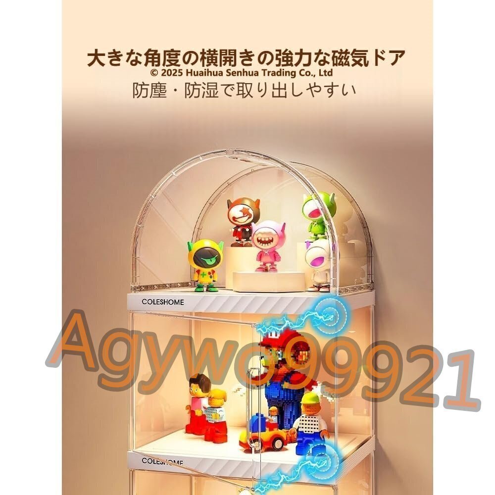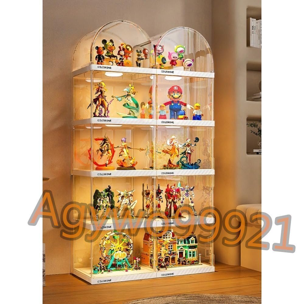 アーチ型デザインで高級感UP 他社にはない美しいアーチ型天板を採用。フィギュアやコレクションをよりドラマチックに演出し、インテリアとしても映えるデザインです リモコン式LEDライト内蔵 ワンタッチで明るさ調整可能なLEDライト付き。暗所でもコレクションの細部までクリ商品の説明商品説明 ▼ こだわりのアーチ型天板で展示を格上げ 従来の四角いデザインとは一線を画す、曲線美のあるアーチ型天板。ディスプレイケース自体がインテリアの一部となり、リビングや書斎の雰囲気をワンランク向上させます ▼ プロ級の展示効果を家庭で 内蔵LEDライトは2段階調光可能。暗闇でもコレクションの陰影をくっきり浮かび上がらせ、博物館のような展示空間を再現します。リモコン操作で即時点灯、配線不要の便利さです。 ▼ 収納の悩みを解決する機能性 ・省スペース設計:幅40cmのコンパクトサイズながら大容量収納, 30 cmの段高キャビネットはほとんどのコレクション、フィギュア、おもちゃに適しています ・防塵&防湿:密閉式構造で埃や湿気をシャットアウト。 ・拡張可能:最大6段までの積み重ねで収納量を自由に調整。