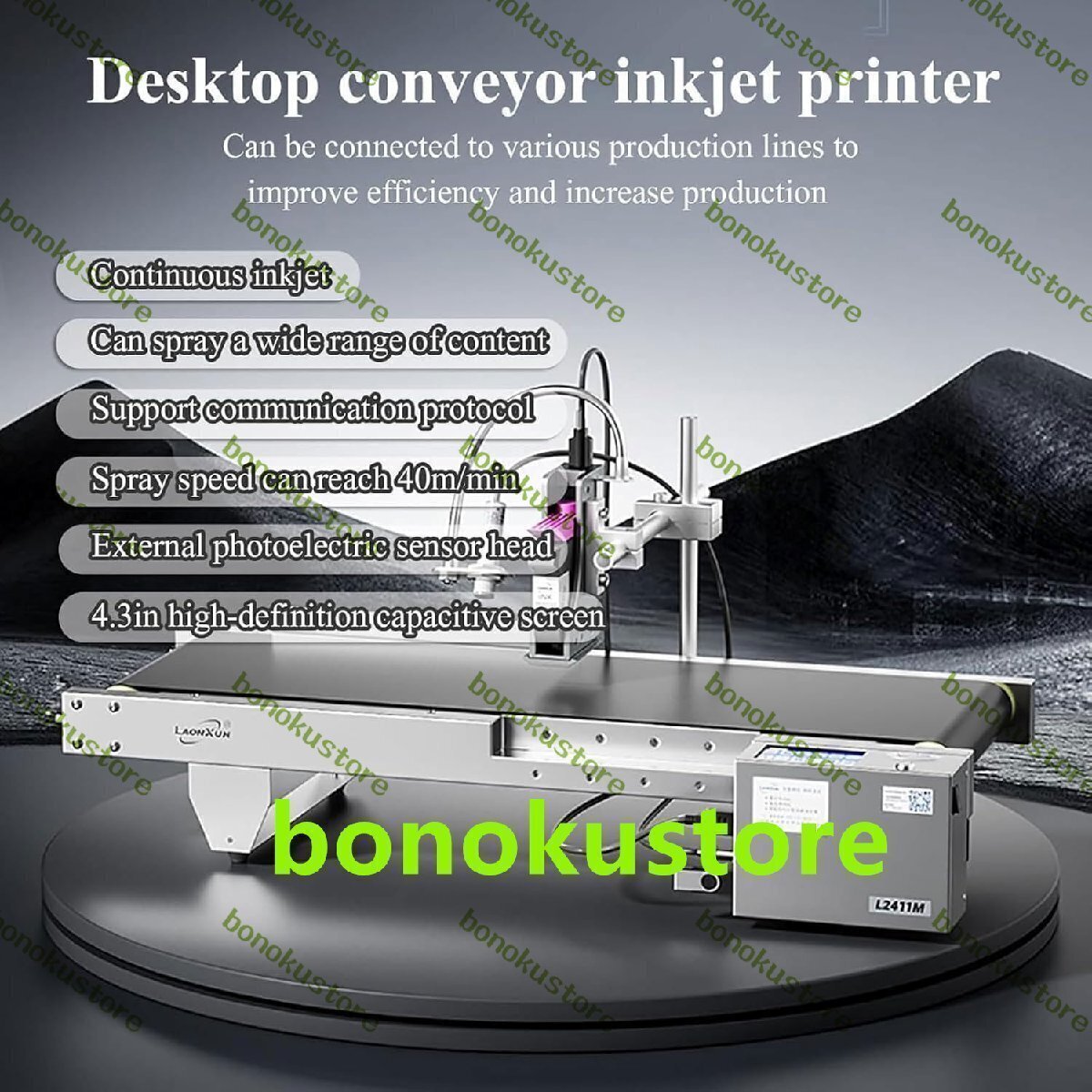 60W デスクトップ自動インクジェット プリンタ、4.3 インチ タッチ スクリーン インテリジェント コンベア ベルト インクジェット プリンタ、多言語対応、40 メートル/分、USB フラッシュ ドライブのインポートをサポート