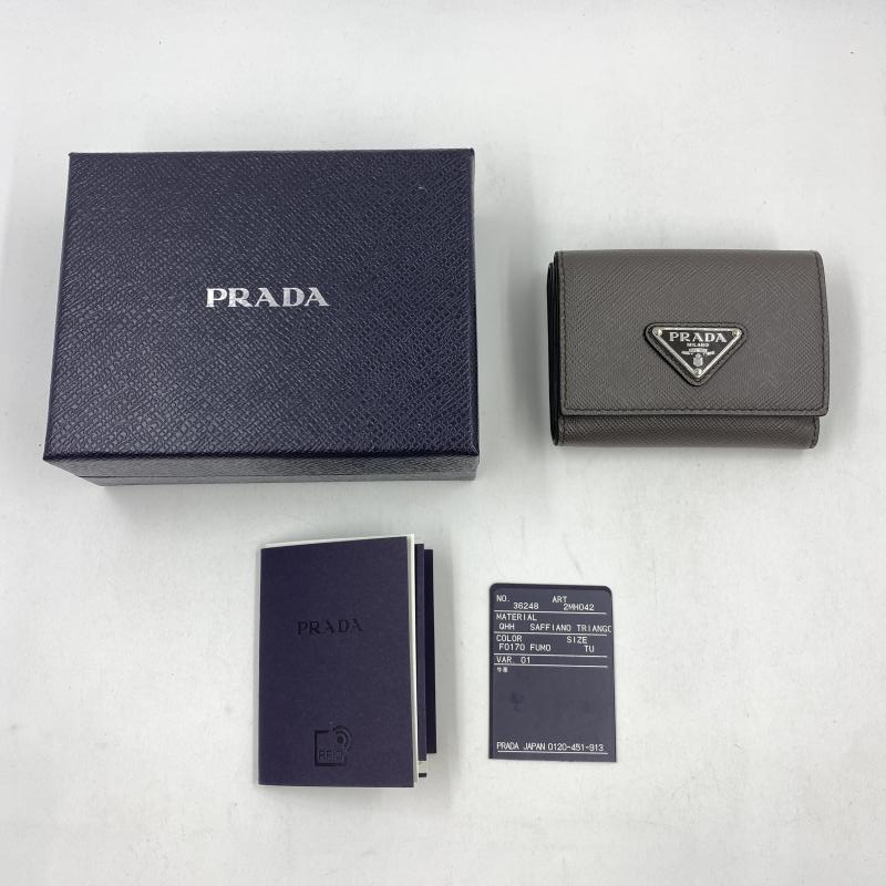 |  | 209007522985)PRADA サフィアーノ トライアングル 三つ折り財布 グリーン 2MH042 IC反応有り R-C プラダ |