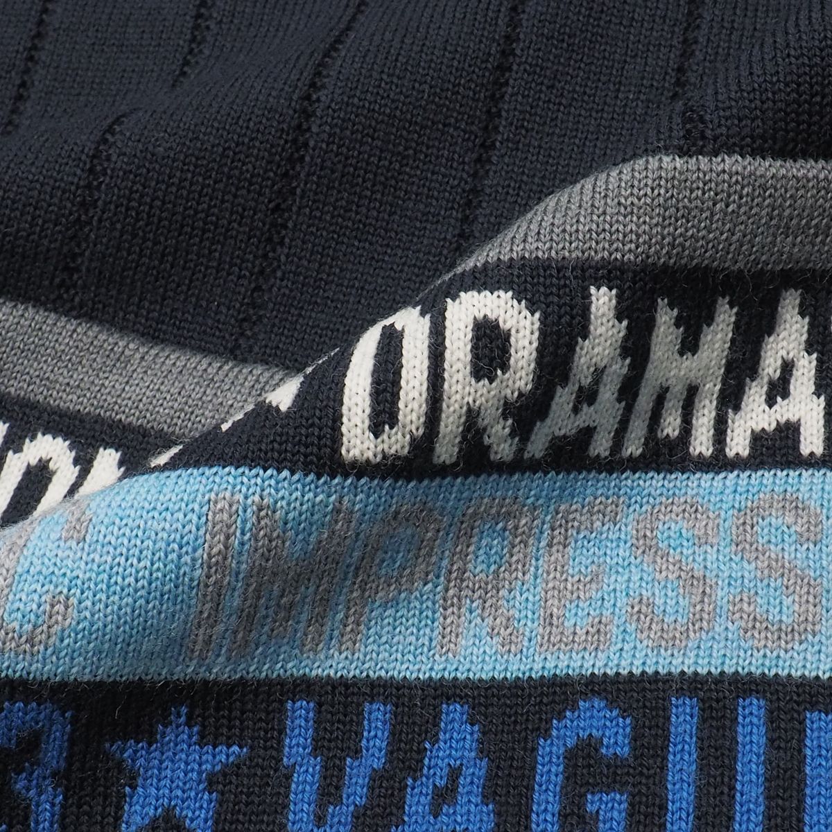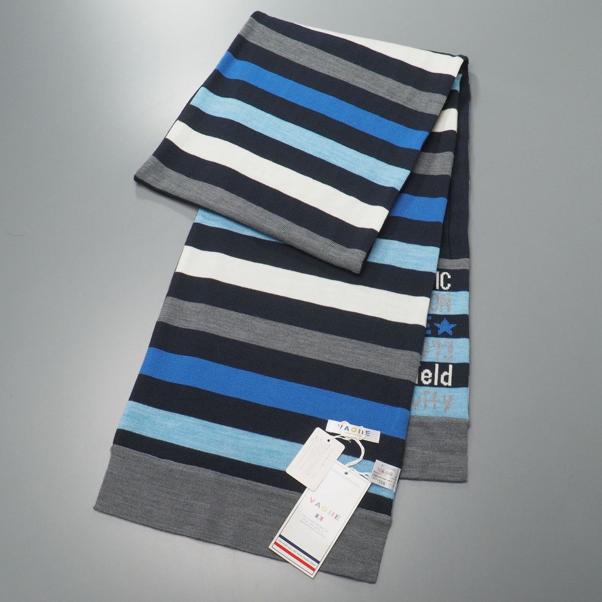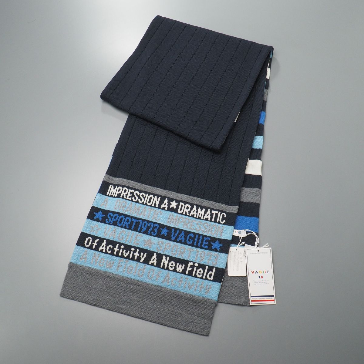 | GS1112◎未使用 VAGIIE バジエ リバーシブル ダブルフェイス ウール マフラー ストール ショール ボーダー×ロゴ 日本製 全長:約187cm | |||