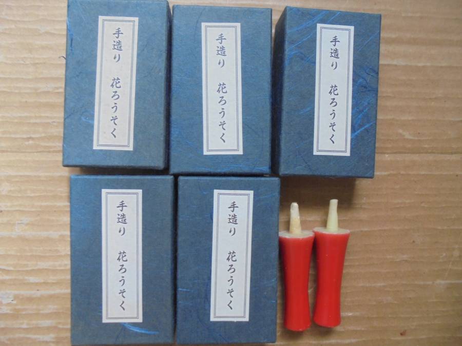 (B)絵蝋燭は「手造り花ろうそく」12本で(うち朱無地2本)、 径2㎝、高さ6.7㎝程度あります。