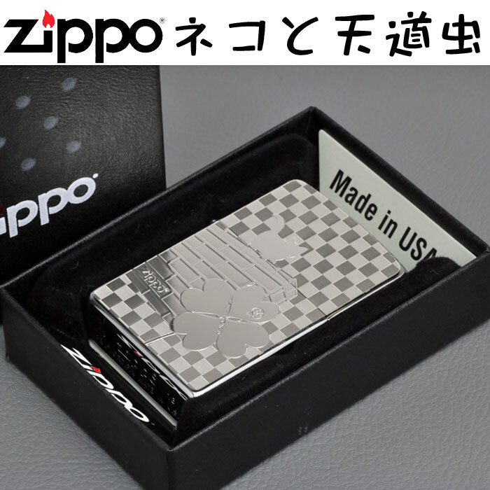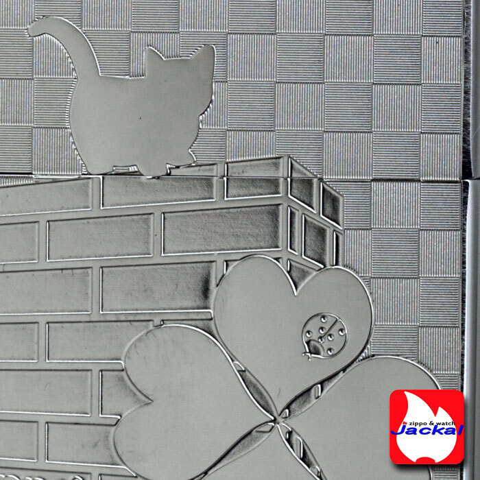 【ZIPPO】ジッポ zippo(ジッポーライター猫) ネコと天道虫 ブラッシュクローム メタルプレート貼り てんとうむし