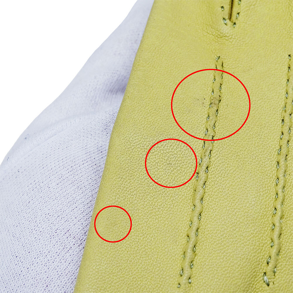 | 状態 | 通常のUSEDの範囲のお品物です。 詳細: 手の甲部分の所々にスレ、黒ずみあり。袖口にスレ、黒ずみあり。指先にスレ、黒ずみあり。内側にスレ、毛羽立ちあり。金具に若干のスレ、小キズあり。 ※こちらはUSED品でございます。使用には問題御座いませんが、神経質な方はご遠慮下さいませ。 |