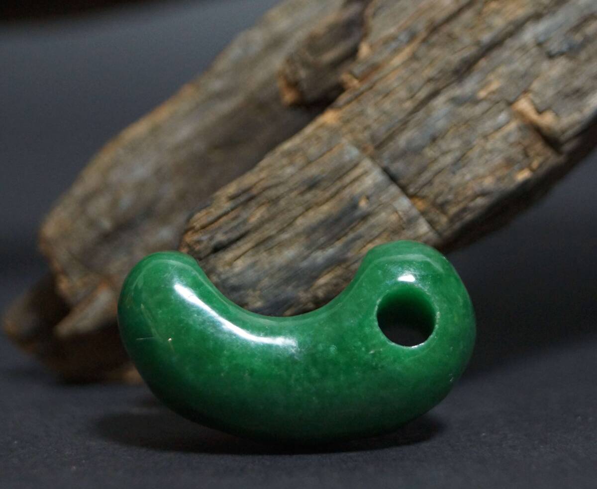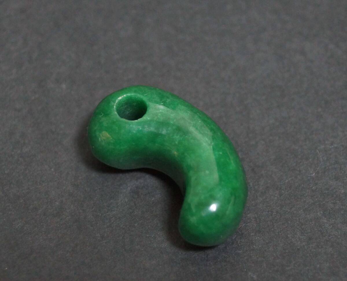 オールド古墳期 糸魚川翡翠 古色翠緑翡翠 ヒスイ勾玉 根付 緒締玉 提げ物 装飾品 長さ2.7cm☆美しい石目☆7D1108