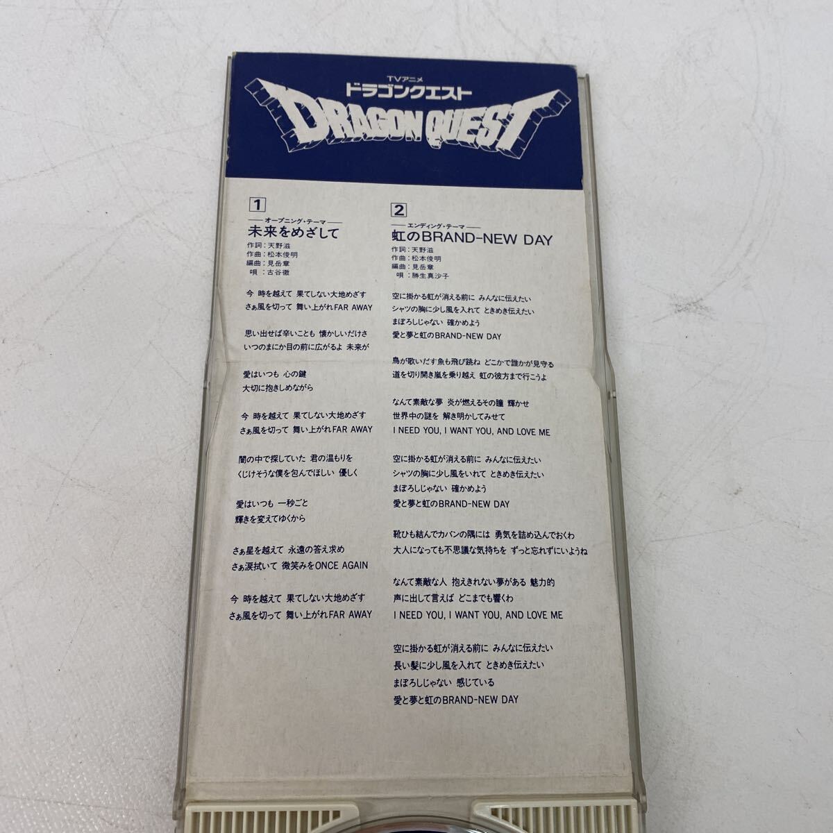 | 商品説明 | 【商品名】 ドラゴンクエスト TVアニメ 主題歌 【状態】 長期保管の中古品です。 ケース破損しています(画像6) 視聴未確認 中古品です、状態は画像でご確認をお願いします。 付属品は画像に写っているものが全てです。 ***************************************** 管理番号1050 | |