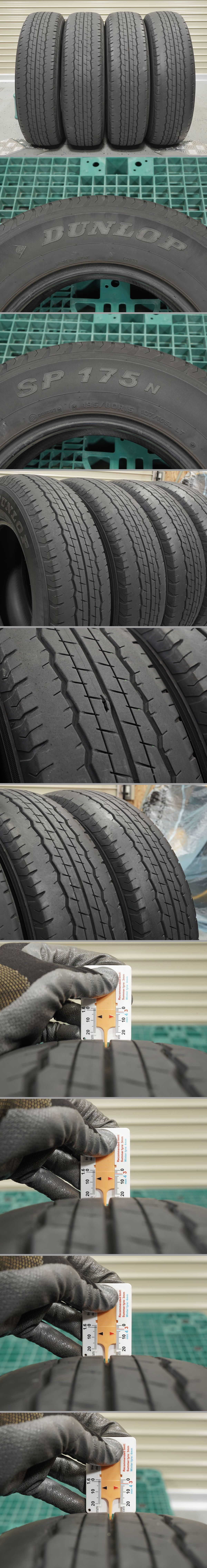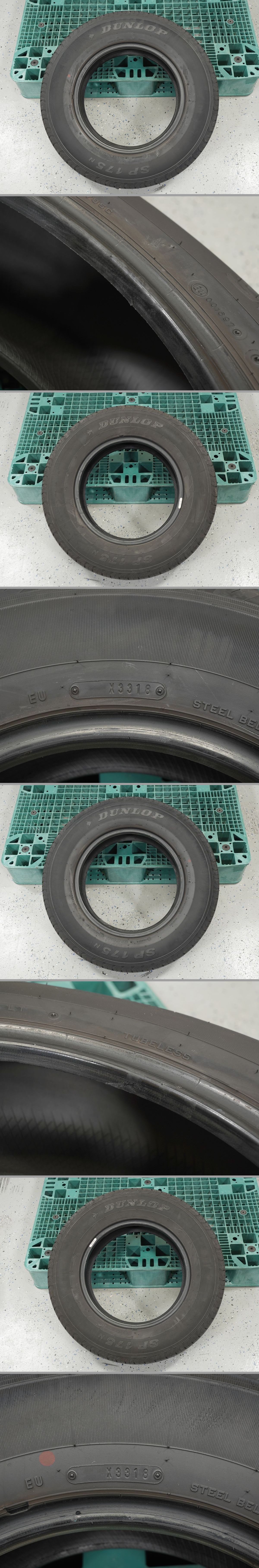 【商 品】 ダンロップ SP175N 195/80R15 107/105L LT 残り溝:約7mm 製造年週:2018年33週製造×4本 【商品状態】 ◎取外されるまでエア漏れ等の問題なく使用されていた物!! ◎高圧洗浄機にて簡易洗浄後、 小石等を除去しながら全体をチェック済み!! ※1本のトレッドに大き目の何かが刺さったような跡あり。 (貫通しておらずエア漏れもしていなかったとの事。) ※3本のビードに小傷あり。 (エア漏れする程度ではないかと思います。) ※上記の為、訳あり?品。 ◎パンク修理やセパレーション等の形跡・ その他にダメージとなる様な傷など無し!! ※その他、多少の内外減りや擦り傷・汚れ等あり。 ◎格安!!ハイエース・キャラバン・NV350車検対応バンタイヤ!! ◎200系ハイエース純正ダンロップ製タイヤ!! ◎訳あり品?の為、格安スタート!! ◎格安タイヤでお得にタイヤ交換を!! ◎車検や転がし用・売却時用・短期での使用に!! | |