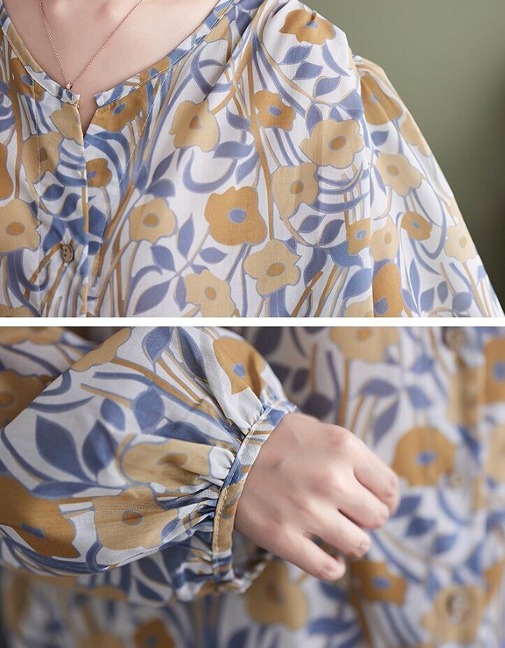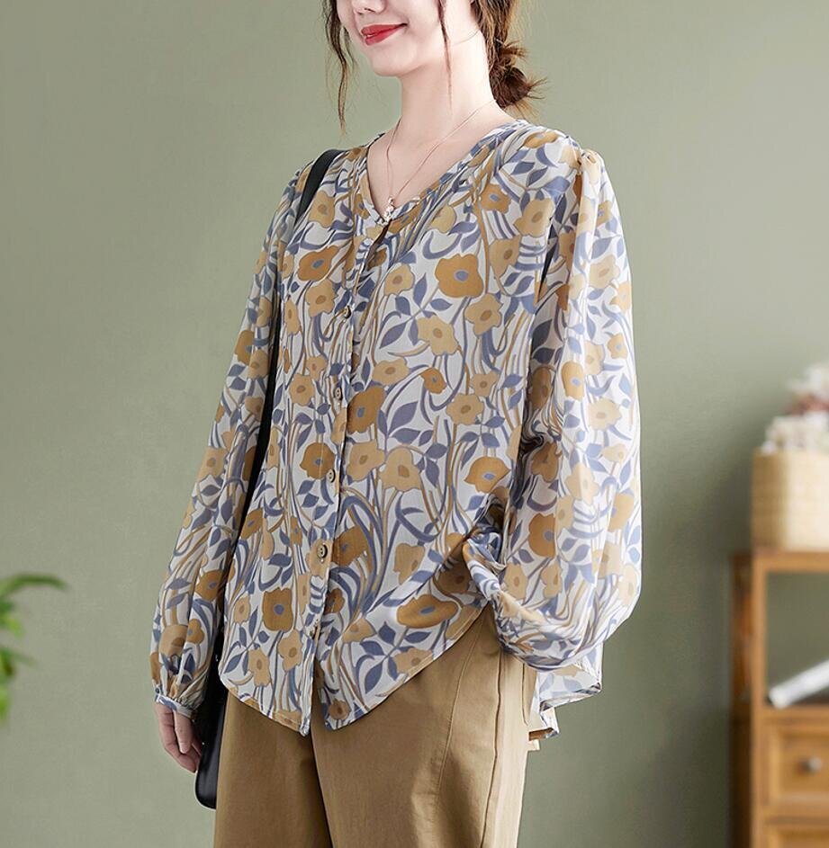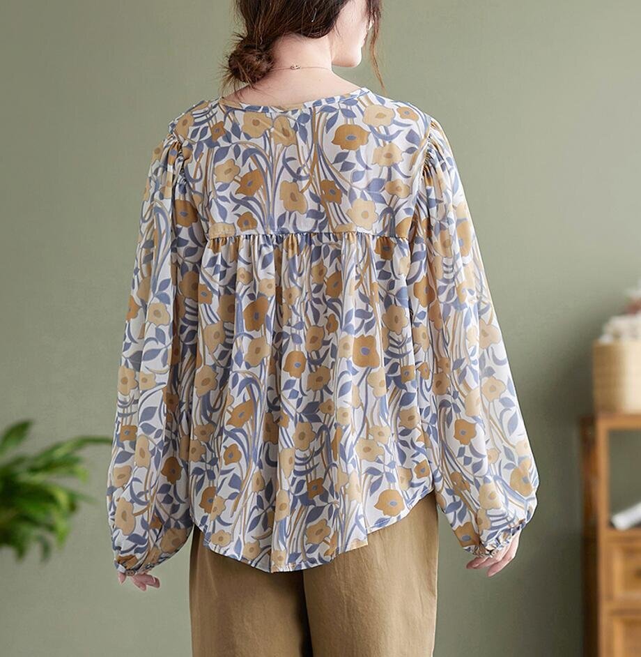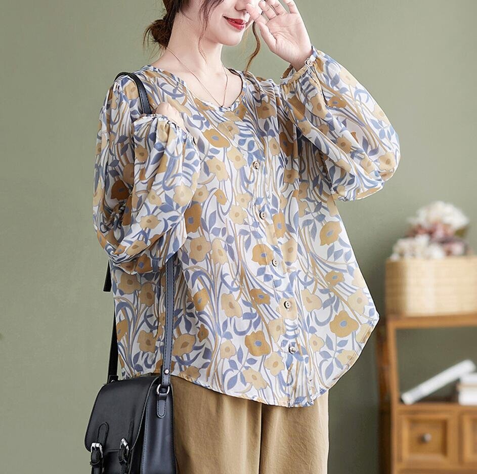 Fサイズ■チュニック 春夏 ブラウス シャツ 長袖 レディース ブラウス トップス ゆったり 花柄 可愛い 大人★