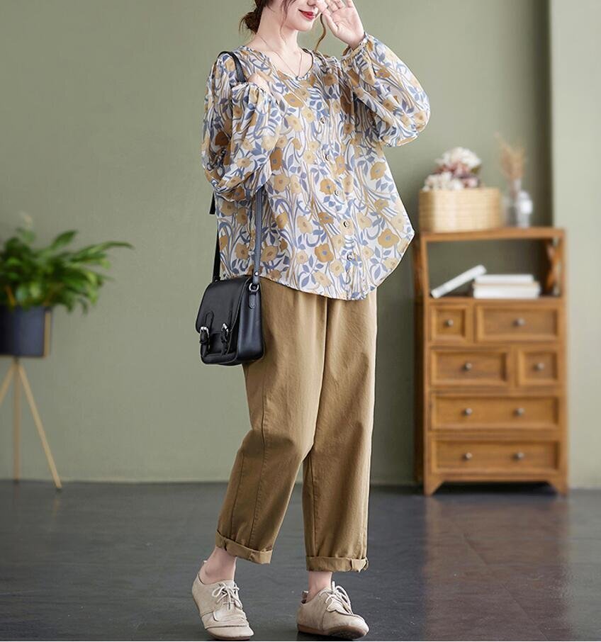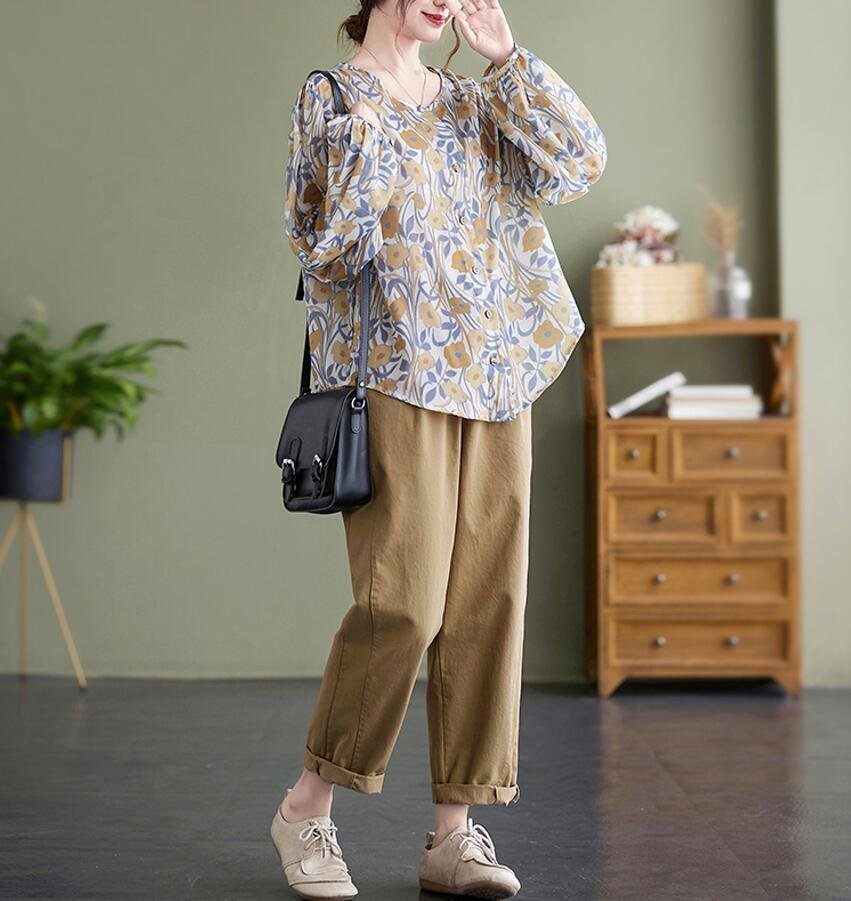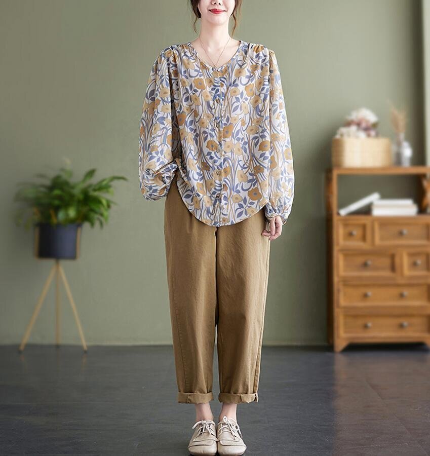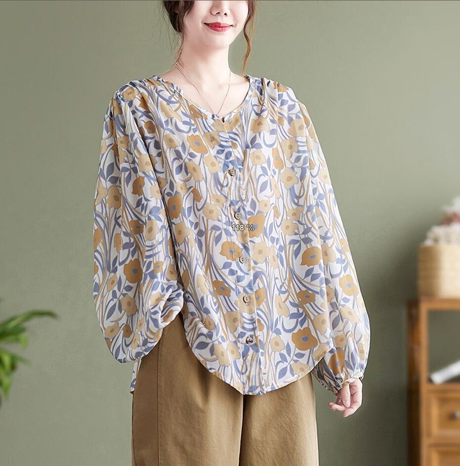 Fサイズ■チュニック 春夏 ブラウス シャツ 長袖 レディース ブラウス トップス ゆったり 花柄 可愛い 大人★ [浏览原始页面]