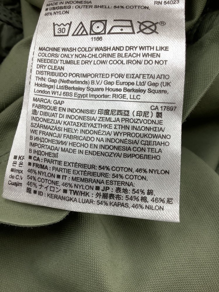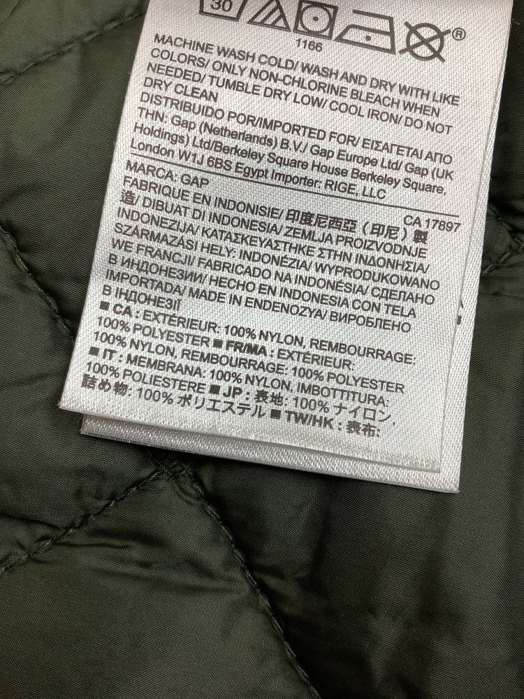 | 管理番号:10^132580 ギャップ 薄グリーンコート キルティングライナー付き 表示サイズ:XS 実寸(参考)