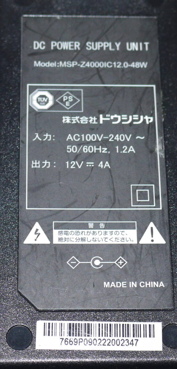 ドウシシャ ACアダプター MSP-Z4000IC12.0-48W DC12V 4A の出品です| 出价者 | 信用 | 价格 | 时间 |