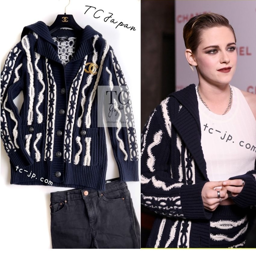 シャネル カーディガン CHANEL ネイビー アイボリー ウール カシミア ケーブル ニット ふんわり 女優 人気 超美品 36 38 [浏览原始页面]