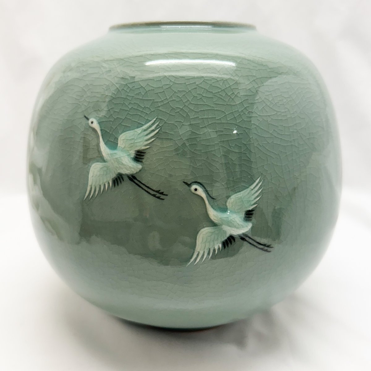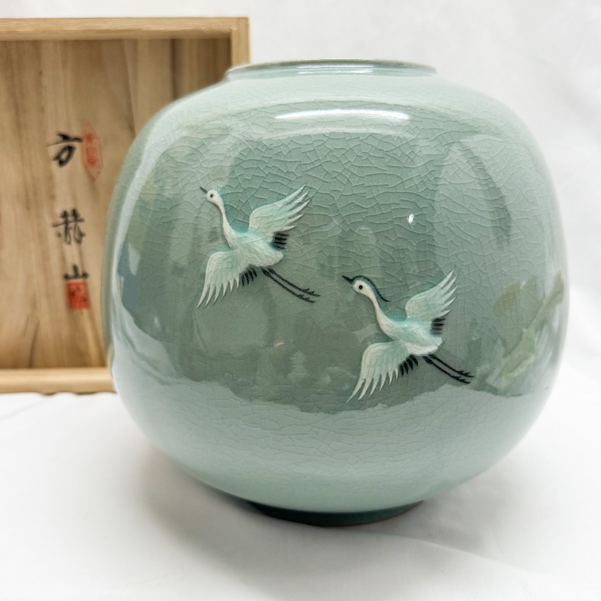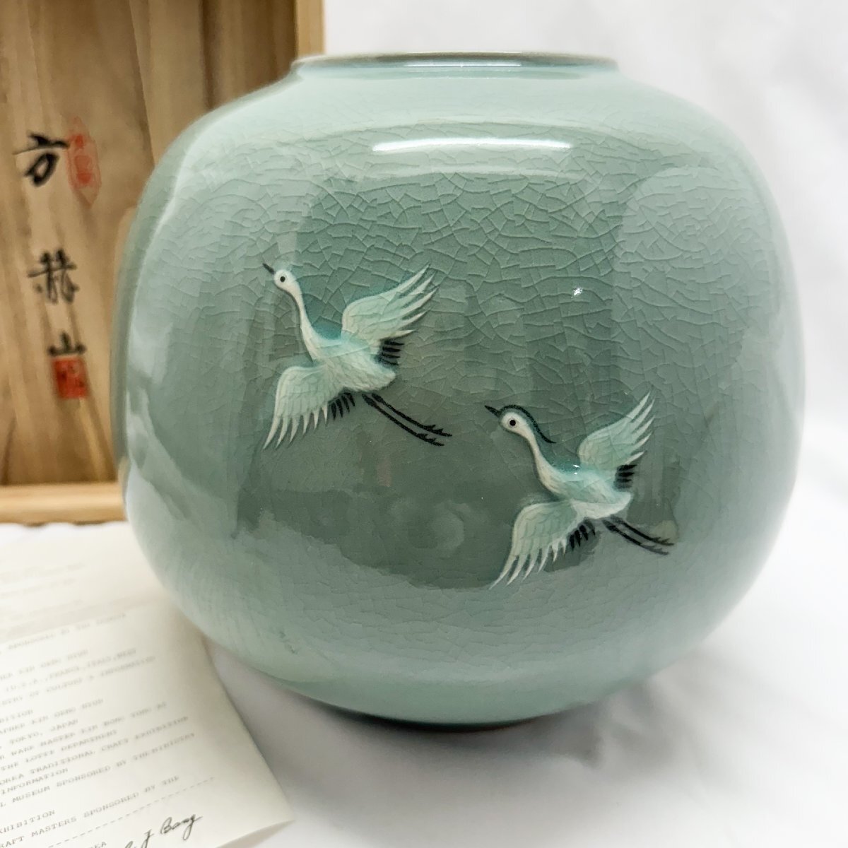 1円~東国窯 壺 方赫山作 高さ25cm×横27cm 共箱付 韓国 未使用 | |||