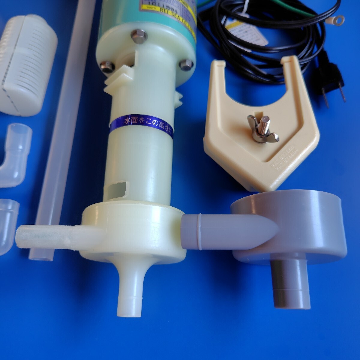 使用期間は2年程 フロントケーシング吐出部を塩ビVP13を入れる為削ってしまい付属のジョイントは緩いです グレーのフロントケーシングは純正ですが吐出吸込部が太く付属のジョイント ストレーナー等は使えない為購入使用する際はVP13 ホース等で少し工夫して頂く必要があります シャフトには透明の樹脂が腐食防止の為?に付いていますが少し破れて少し錆が上部に出ています 水入りバケツで動作確認済OKです 宜しくお願いします