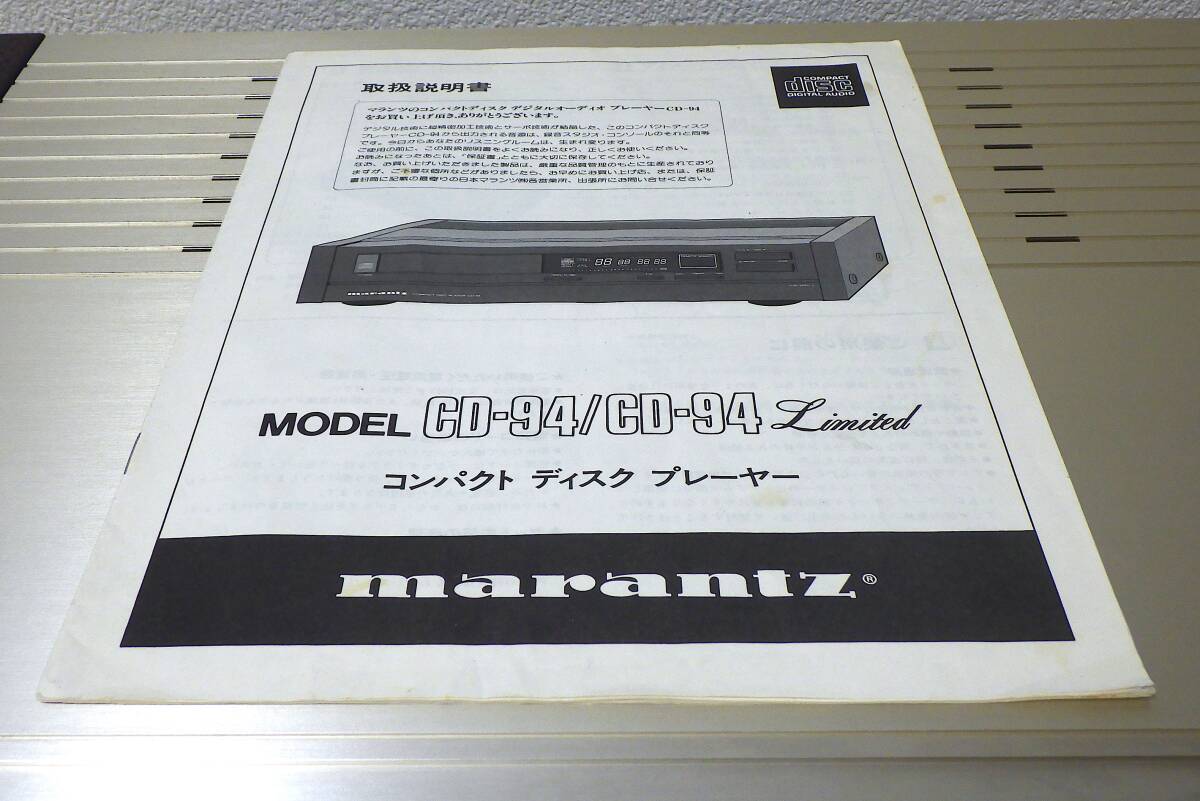 動作品 MARANTZ CD94 LIMITED リモコン 取扱説明書付き 再生確認済ですが、電源投入直後は1曲目が読み取りにくい事があります。フロントパネルでの操作、リモコンでの操作も問題ありませんでした。フロントパネル上部角部分に小さな打痕が数カ所、側面のサイドウッドに薄い擦り傷などが見られます。現状ご理解できる方のみご入札ください。古い商品になりますので、新品同様の状態を求められる方や、状態に神経質な方は入札をご遠慮ください。御質問も、その内容や、質問頂いた方の評価などによっては返信を控えさせて頂きます。ゆうパックおてがる配送100サイズにて発送いたします。以上をご理解のうえ入札をしていただき、ノークレーム、ノーリターンでお願いいたします。評価の悪い方や新規IDの方は入札を削除いたし。かんたん決済お支払い期限内にお支払いがない場合は落札者都合でのキャンセル扱いにいたしますので予めご了承ください。
