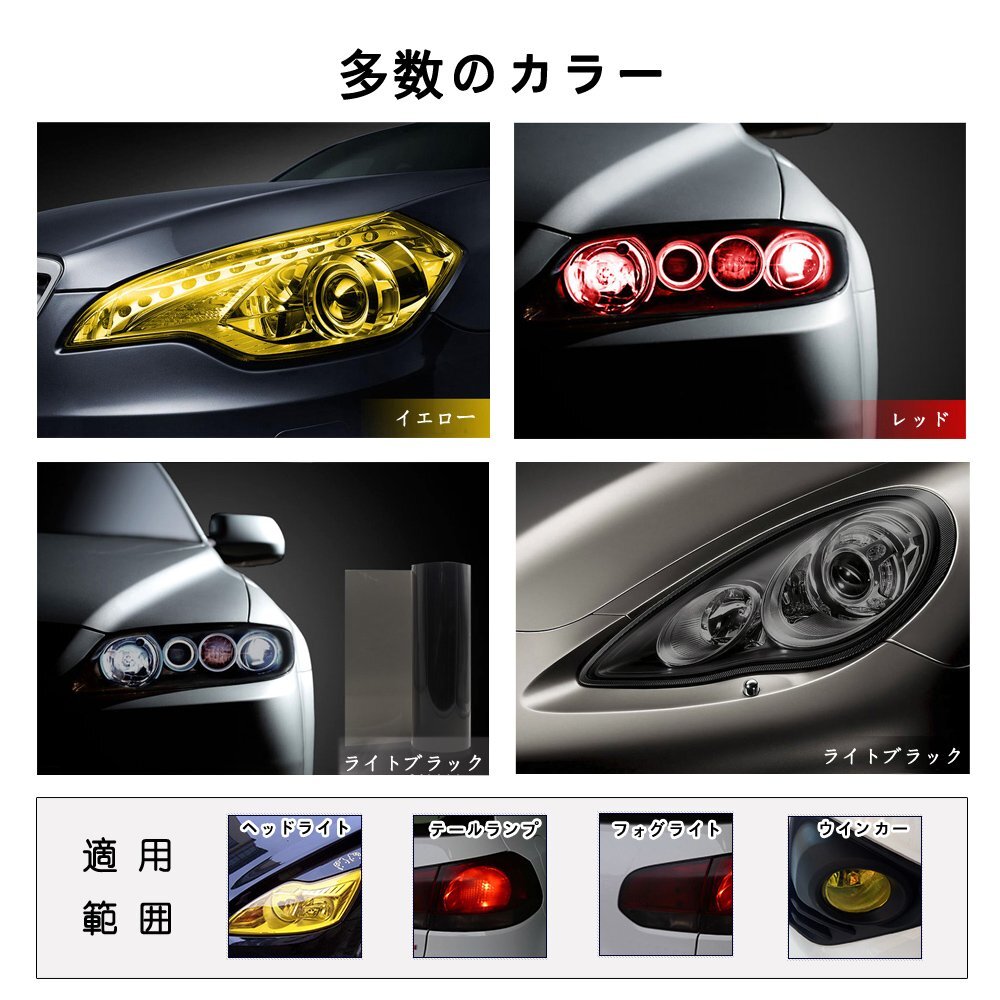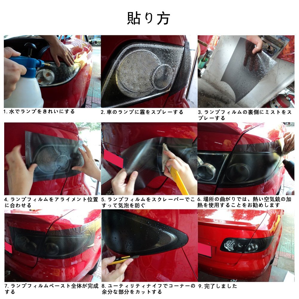 材質:縮みか少なく、耐久性の高いPVCフィルム。 愛車を保護しつつ、クリアイエローで雰囲気をチェンジ。点灯時もいつもと違う光り方が楽しめます。 裏面は粘着シートなので、貼り付け簡単。ハサミやカッターなどでカットも簡単に出来ます。剥がす時も綺麗に剥がれます。 表面に保護フィルムが付いているので持ち運びや取り付け時にも傷からフィルムを守ります。保護フィルムが貼って有ります必ず剥してから取り付けされて下さい。 適用範囲:車&バイク | ヘッドライト、フォグランプ、テールランプ、ウインカー、等々。 ■ 製品仕様 [サイズ] 30cm×120cm [厚み] 0.15cm [材質] ポリメリックPVC [フィルム製法] ポリメリック・ハイグレード・カレンダー製法 [施工推奨温度] 16°C-32°C [屋内保管期限] 2年 [再剥離性能データ] 3年 ■ 貼り方 貼る面をキレイに洗います。油分は良く落としましょう。 貼る場所にあわせて大まかにカットします。 保護シート、のり面のシートを剥がして位置を合わせます。(水貼りもOK) ※空気が入らないように注意しながら引っ張りながら貼り付けます。(ドライヤーを使うと良く伸びいます) ※ボディにキズがつかないようにカットすれば完成です。 ■ 使用上の注意 保護フィルムが貼ってあります。必ず剥がしてお使いください。 貼付時にドライヤーなどで炙りながら貼り付けることで、シワや歪は取除かれ綺麗に貼り付けられると思います。(火傷などに十分注意して作業をして下さい。) フィルムを貼り付ける事でフィルム装着前と比べ光量は下がります。 表面保護の為にフィルムが貼ってあり、仕様上時間の経過でシワとなってしまいます。商品には問題御座いませんので、ご理解いただいた上でお買い求め下さい。 ※初期不良、輸送中破損の場合、対応いたしますのでご連絡ください。 ※表面保護フィルムは堅く掲示される、それが剥がされることができない場合は、また、それを維持することができますしっかりと掲載。保護フィルムは透明なビニールフィルムであり、0.03 mm だけ、余りに影響を作り出さない。ご不安な方は専門業者に貼付を依頼してください。 |
