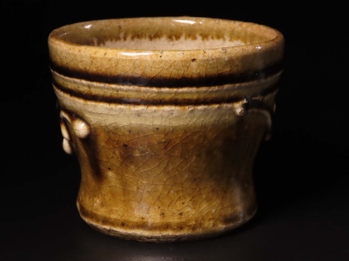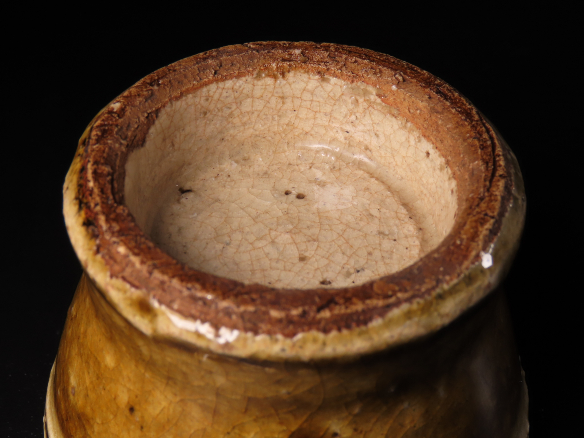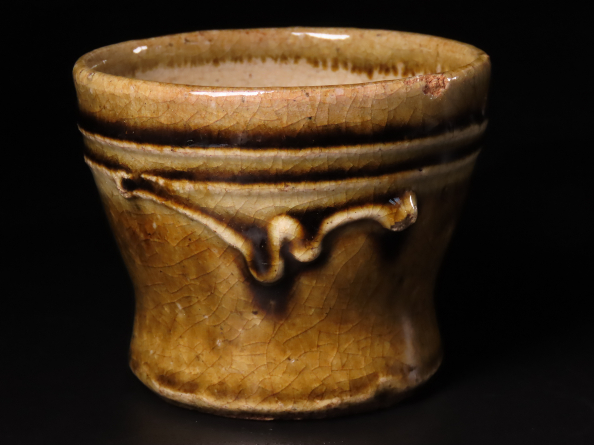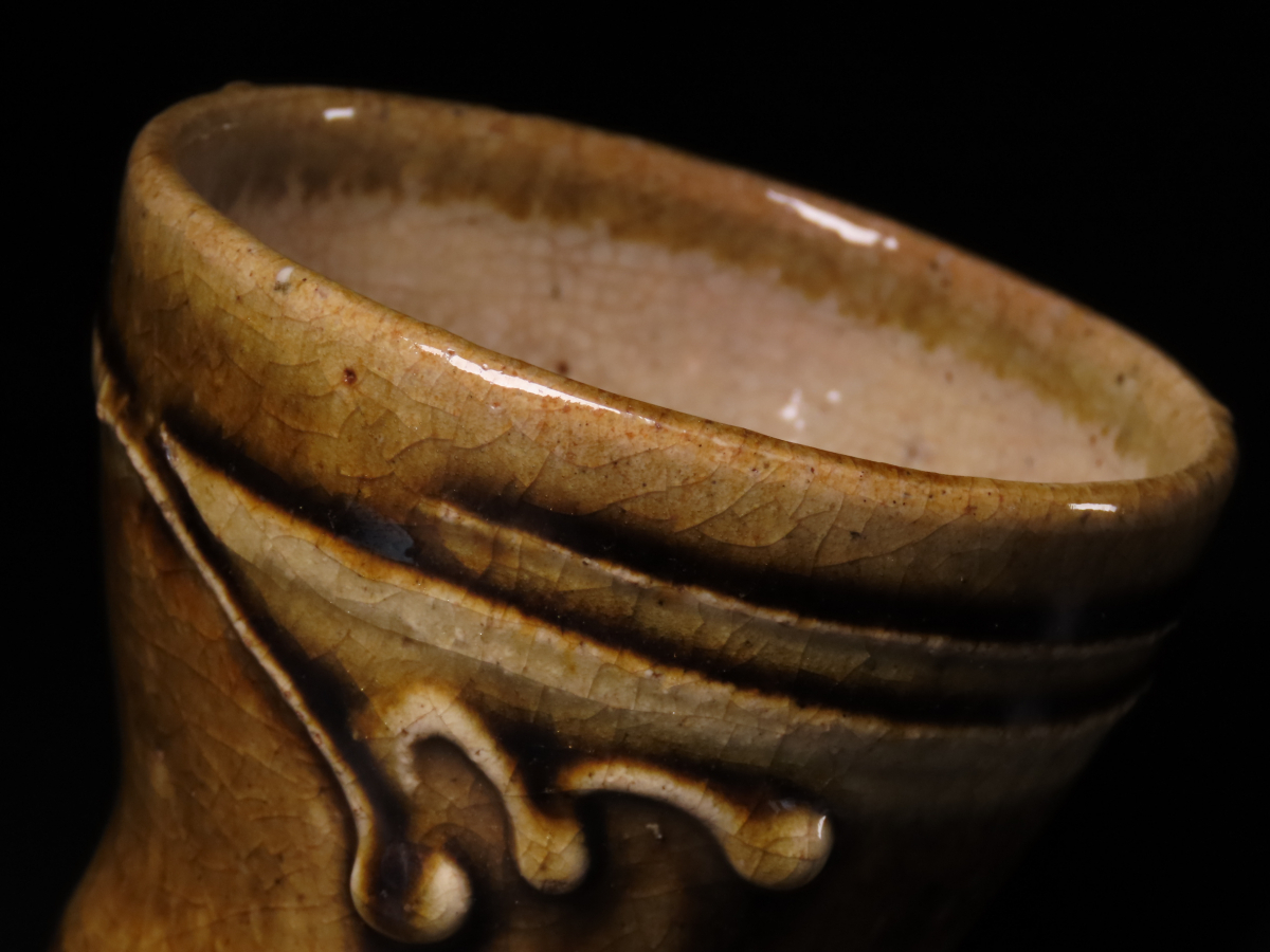 【ONE'S】民藝の巨匠陶芸家 河井寛次郎 の作品か 秀逸作 黄釉筒描文碗 湯呑 ぐい呑み 煎茶碗 茶器 茶道具 古美術品 ② | |||