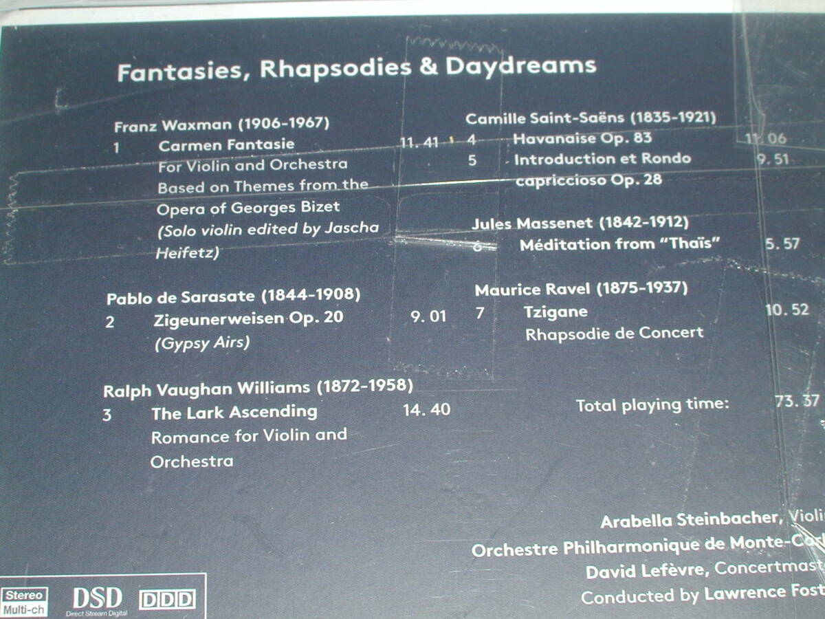 SACDハイブリッド盤「ヴァイオリン名曲集Fantasies」です。CDは大切に扱っていますが、細かい傷の見落としはご容赦ください。聴かれるには全く問題はありません。