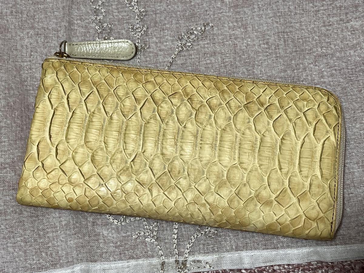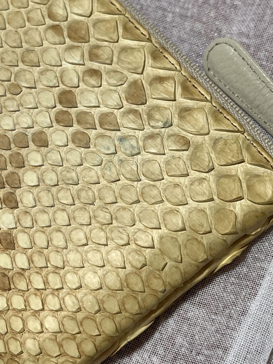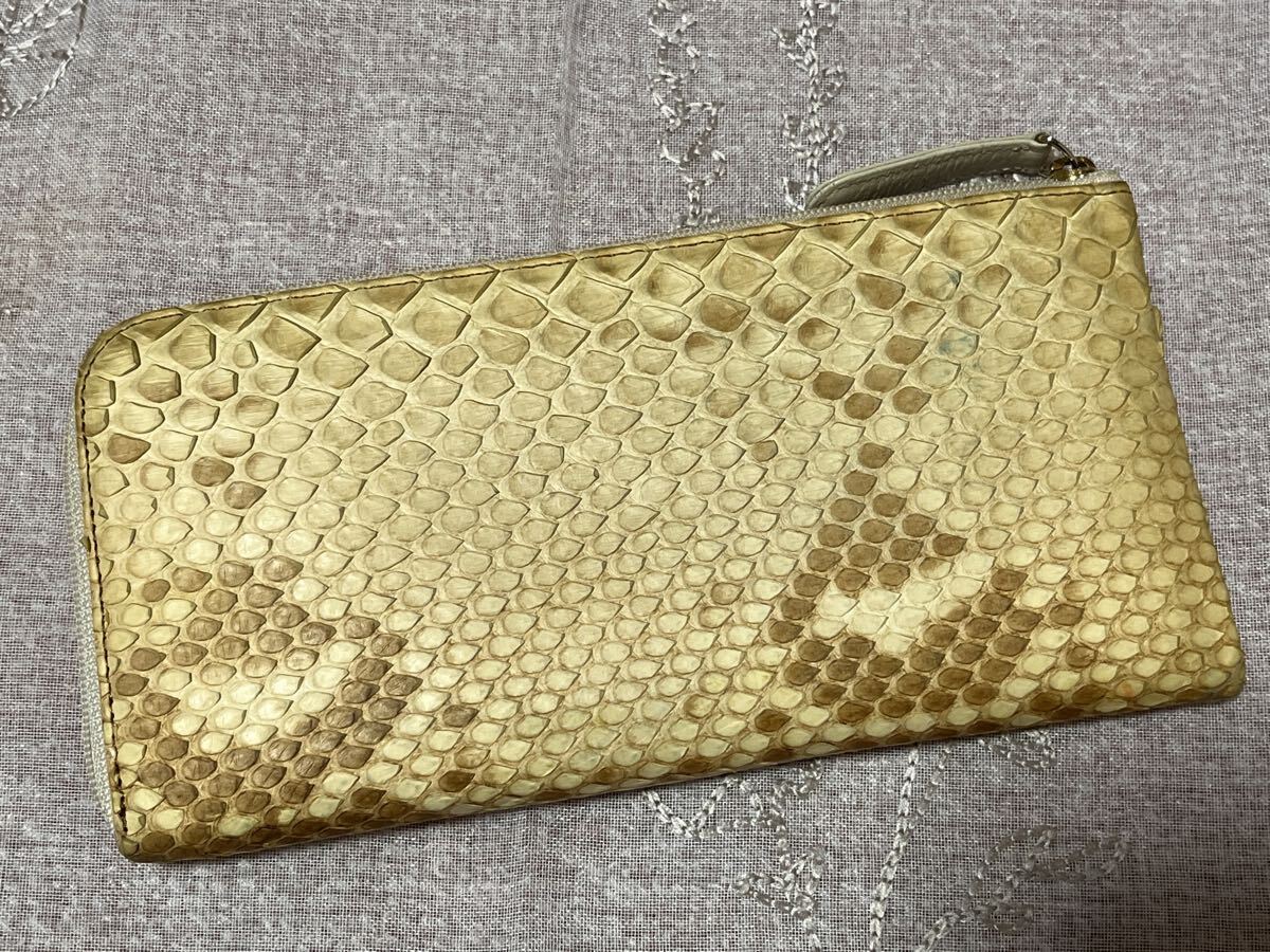 白いパイソンの蛇革が上品な、金運アップも期待できそうな長財布です。表面に若干保管時の色移りがありますが、内側は傷汚れは無く綺麗です。| 出价者 | 信用 | 价格 | 时间 |