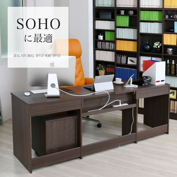 | 4つのサイズから選べるワイドデスクです。 幅広い天板はひとりなら広々と、ふたりでも十分使用できます。 両サイドに付いた引き出しや中央のオープン部といった収納スペース、 配線コードを収納するのに便利な背面のデザインなど、大きいだけではなく機能面も充実! オフィスや書斎など、さまざまなシーンで使えるシンプルで便利なデスクです。 |