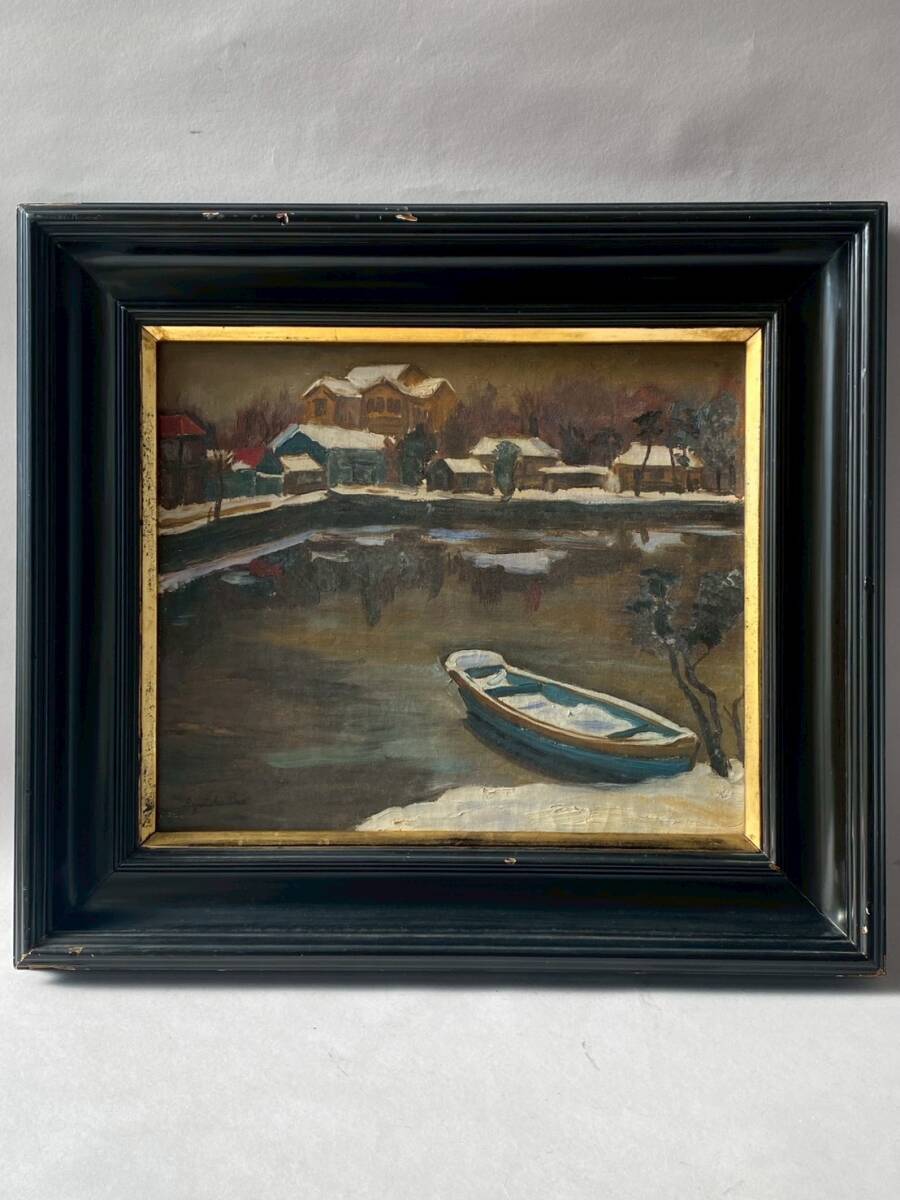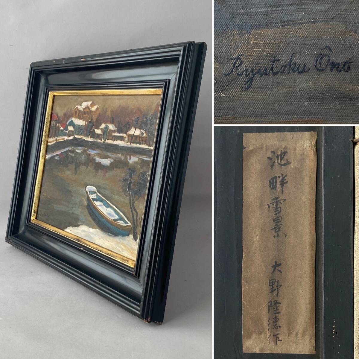 この度は数あるオークションからご覧いただき、ありがとうございます。 真作 戦前油彩画 大野隆徳(明治19年~昭和20年) 「池畔雪景」 8号大 額装 です。 ■商品説明■ 帝展、文展、光風会で活躍した大野隆徳(おおのたかのり)の作品です。 京都国立近代美術館、千葉県立美術館など、同氏の作品が収蔵されております。 作家サイン「Ryutoku Ono」となっており、他に「T.Ono」、「Ryu Ono」などいくつかネームを使い分けており、昭和初期頃に多く使われていたサインで、晩年の作品かと思われます。 昭和20年3月の東京大空襲で作品の多くを焼失し、自身も戦災により亡くなったと記録が残っており、希少な作品ではないでしょうか。 ■サイズ(約)■ キャンバス:横幅47㎝ 高さ39.5㎝(8号大) 額:横幅66㎝ 高さ59㎝ ■商品状態■ こちらは古い物となり、商品状態・時代感を損なわぬ様、乾拭きなどの簡易清掃にて出品しております。 額のアタリなどのイタミ、画面油彩にややヒビ等が見受けられます。 ほか時代・保管・使用に伴うスレ、小傷、落としきれない汚れ等あるものとご承知おきください。 詳細な状態につきましては画像にてご判断頂きご入札をお願い致します。 ※下記、発送詳細・支払い方法・その他、注意事項をご一読ください。 |