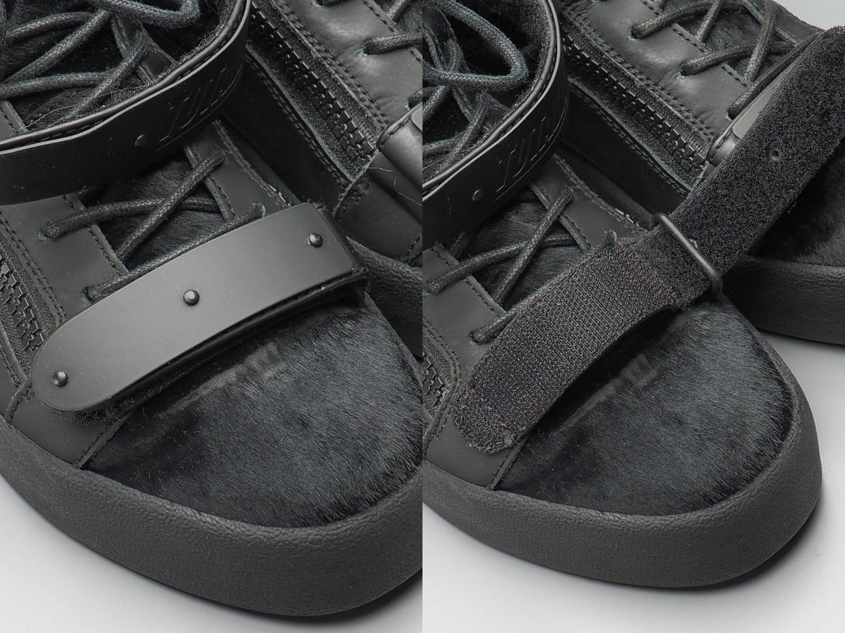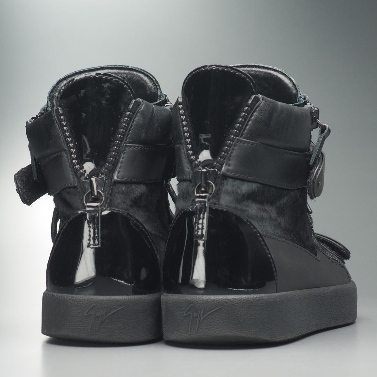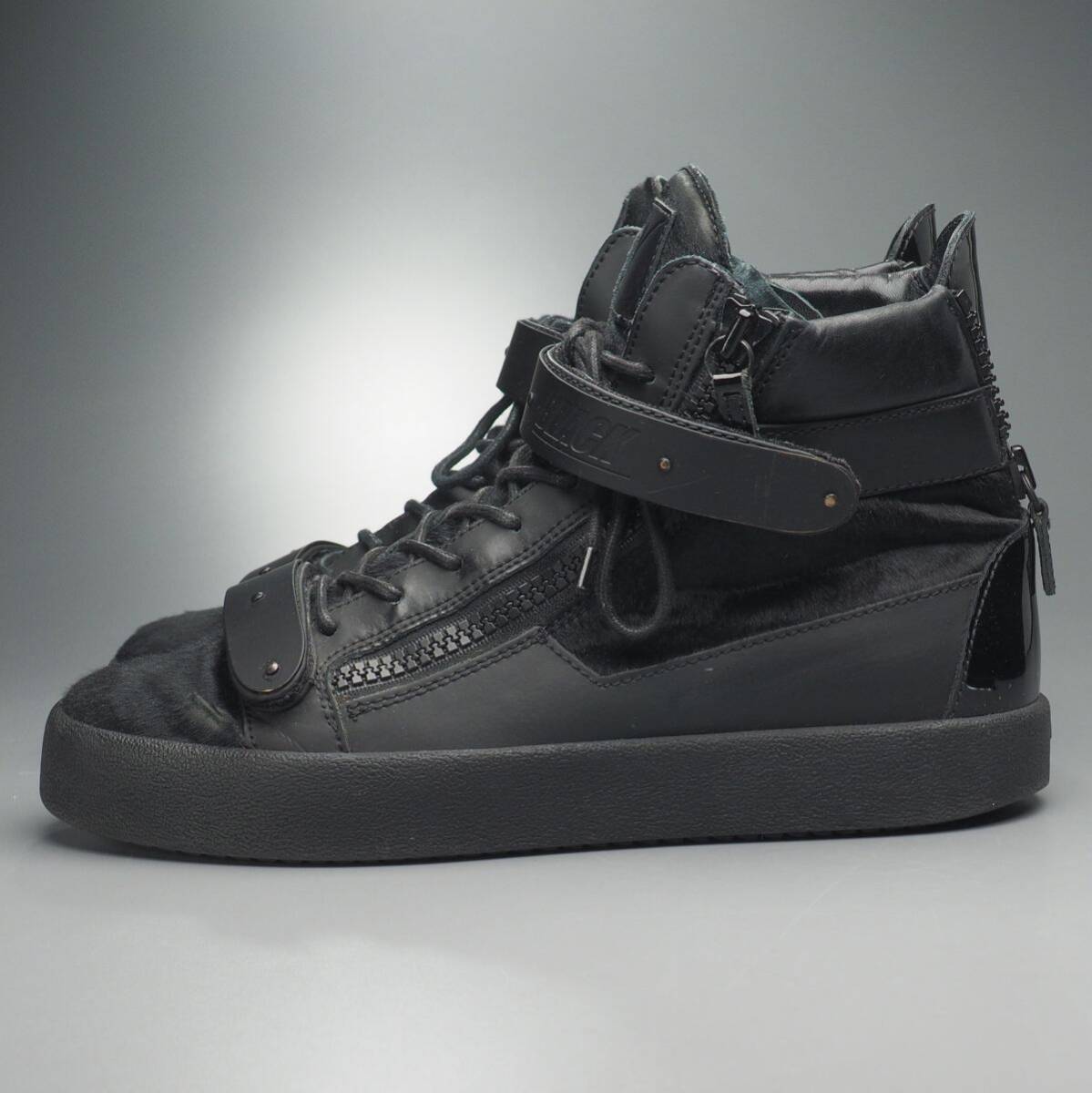 | GS5329//イタリア製*ジュゼッペザノッティ*Coby/メンズ44/TOTALLY BLACK/ハラコ×レザー×パテント/スニーカー/ハイカット/靴/黒/ブラック | |||